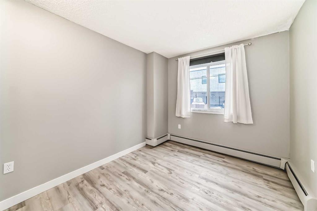 WHY PAY RENT?! Conveniently located in the heart of popular Sunalta in a quiet concrete building, just steps from the C-Train station and within walking distance of numerous breweries, pubs, restaurants, and cafés, this stylish 2 bedroom end-unit condo offers exceptional value! Renovated throughout, it features an efficient galley-style kitchen with granite counters, maple cabinets, and newer stainless steel appliances including a Miele dishwasher, along with an adjoining dining area and bright living room. Both bedrooms are generously sized, and the renovated bathroom features a deep soaker tub. You’ll love the convenience of in-suite laundry with newer front-loading machines, plus plenty of storage with several large closets and an underground storage locker. A rare highlight is the private fenced 10×11 patio/yard that opens onto another fenced area, creating a unique outdoor space to enjoy. The unit also includes a secure heated underground parking stall! This pet-friendly building (with board approval) offers amenities including an enclosed bike storage room, his-and-hers saunas, underground storage lockers, and underground parking, and is responsibly managed with a reasonable condo fee that includes heat and water. Call your favorite Realtor to arrange a private viewing!