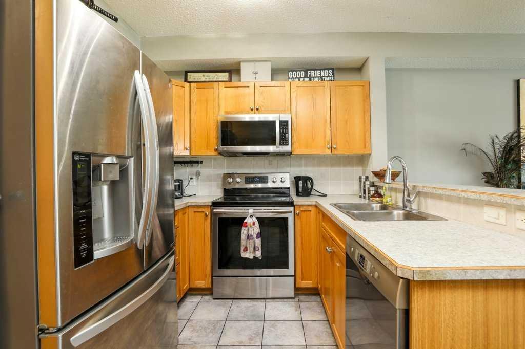 This main floor unit is set in one of the most desirable locations, backing directly onto the lake with uninterrupted views extending to the Highwood Golf Course — the Foothills’ premier 27-hole golf destination. Surrounded by mature trees and open green space, it offers a quiet, natural setting where wildlife is often part of the landscape. The covered deck, complete with gas line, is perfectly positioned to take it all in.