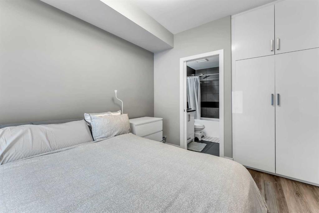 ~UPGRADED WITH AIR CONDITIONING~, LOCATION, PROXIMITY, and AFFORDABILITY awaits! Fantastic opportunity to own as an investor, a first-time home buyer, or a downsizer in the trendy and sought-after inner-city community of BRIDGELAND. This cozy 2-bedroom, 2-bathroom, with 1- titled underground parking & assigned storage space is all you need! Offering custom built-in appliances, two-tone kitchen cabinetry, Quartz countertops, and laminate flooring seen throughout! This unit delivers with an open-concept layout, modern finishes featuring a blend of urban convenience, and a twist of European flair! Primary bedroom with a private 4pc-ensuite, and secondary bedroom well-appointed in size can double up as an office, both rooms come with built-in wardrobes and located opposite of floor plan which makes for optional roommate living enjoyable and practical. This unit is quiet & south-facing, with a private patio entrance/door via the exterior building (southside), allowing for quick/easy access to your unit. Take advantage of the building’s unique amenities, including a PET-WASH station, a boutique style fitness/yoga area, and a RARE rooftop patio/terrace with communal spaces, for get-togethers, shared experiences, and BBQ mealtimes – all while enjoying unobstructed views of Calgary’s downtown skyline! Features: INSUITE laundry | Private patio/balcony with gas hook-up for all your fresh-air and BBQ needs. Electric Mounted fireplace | GAS Cook-top |building elevator to access all floors | Wheel-chair accessibility if needed | An UNBEATABLE location, with shops, cafes, playgrounds, schools, convenient public transit, paved walkway/pathway systems, and award winning restaurants-all within a 1km radius! Don’t delay and book your private showing today!