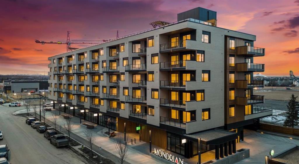 Nestled in the heart of West District, Mondrian offers the perfect blend of comfort, style, and practicality—ideal for those who appreciate the simplicity and convenience of urban living. Thoughtfully designed, this intimate yet efficient home maximizes space while maintaining a warm and inviting atmosphere. As you step inside, the open-concept layout creates an airy feel, with a functional and stylish kitchen at its heart. Featuring premium appliances, including an integrated refrigerator, gas range, and built-in microwave, it’s perfect for preparing meals in the comfort of your own home. The living area extends seamlessly to a private patio, offering a peaceful retreat for morning coffee or evening relaxation. The two bedrooms provide a restful escape, designed for both comfort and tranquility. Additional conveniences include in-suite laundry, air conditioning, and window coverings throughout, ensuring everyday ease. The unit also includes one underground parking stall. Beyond your private space, Mondrian elevates the living experience with its rooftop terrace, where you can unwind in the seating areas while taking in views of the vibrant West District. Whether enjoying a quiet moment or gathering with friends, this space is perfect for every occasion. Ideally located just steps from trendy shops, dining, and green spaces, Mondrian offers unparalleled convenience in one of Calgary’s most desirable neighbourhoods. Move-in ready, this cozy residence is waiting for you to call it home.
