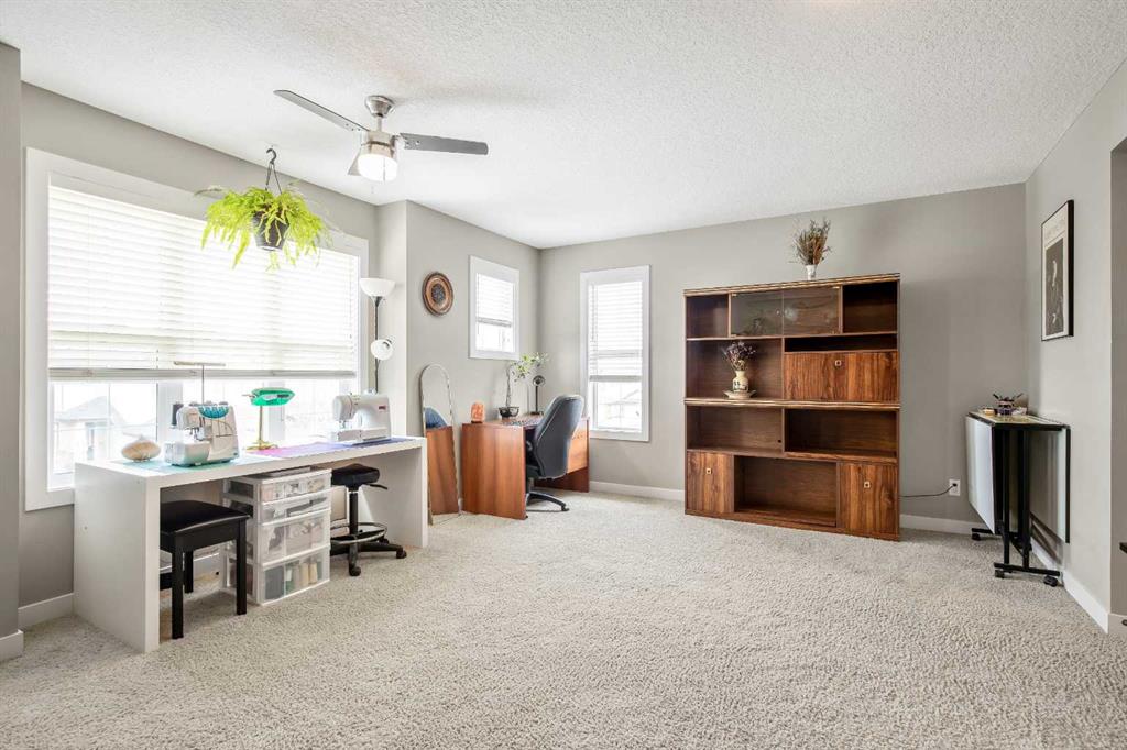 Upstairs, you’ll find three generously sized bedrooms, a full 4-piece bathroom, and a large bonus room—perfect as a play area, home office, or additional family space. The primary suite is a true retreat, impressively sized to accommodate a private sitting area, and complete with its own cozy gas fireplace. The luxurious ensuite includes a soaker tub, double vanities, a separate shower, and a walk-in closet. The upper-level laundry room adds convenience, offering countertop space and drying racks.