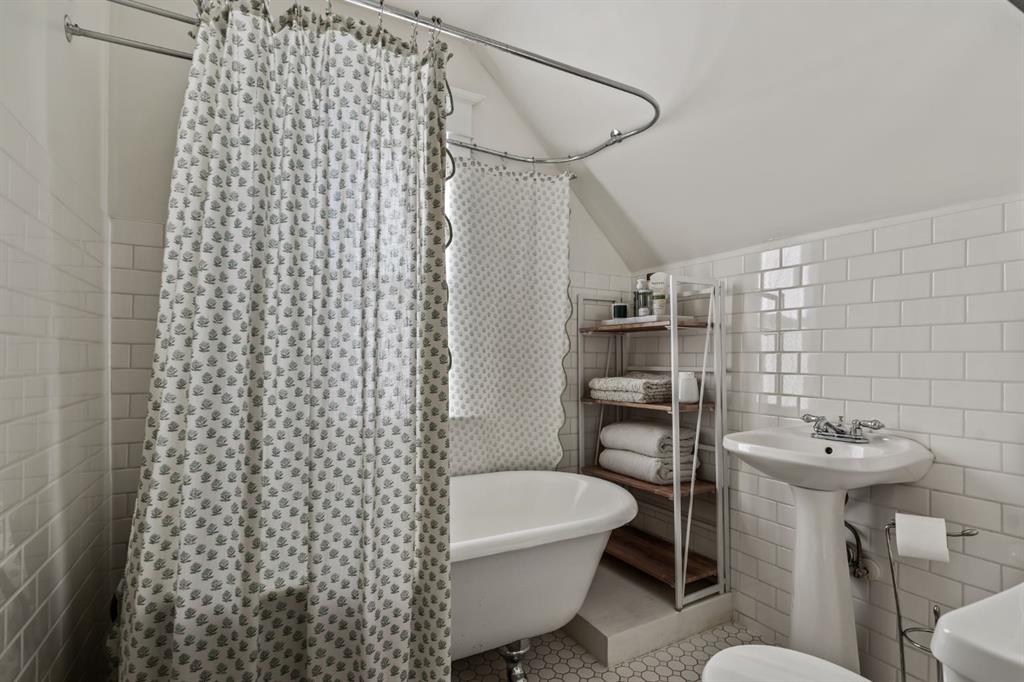 Welcome to this beautifully maintained 1910 character home in the sought-after community of Ramsay, where timeless charm meets thoughtful modern updates. From the moment you arrive, you’ll appreciate the warmth of original architectural details, inviting living spaces, and the unmistakable appeal only a century home can offer. The charm begins at the front door with a fully enclosed, window-wrapped sunroom an ideal extension of the home during warmer months and the perfect spot for morning coffee, reading, or play. Inside, original hardwood floors, elegant crown moulding, and classic archways set the tone. The bright, open living room features a custom built-in window seat with storage and a built-in media area with dimmable lighting, creating a cozy yet functional gathering space.The living area flows seamlessly into the spacious kitchen and dining area, complete with heated floors and french doors leading to the back deck with a large custom screen. The kitchen offers stainless steel appliances, including a newer Miele dishwasher, ample storage, and a good sized pantry. A stylishly updated powder room (2019) completes the main level. Upstairs, you’ll find three bedrooms and a four-piece bath. The primary bedroom showcases original hardwood floors and a custom California Closet with integrated adjustable channel lighting and a makeup vanity. One of the secondary bedrooms, currently used as a playroom, provides access to the upper back deck. The bathroom blends vintage and modern with a clawfoot tub, crisp subway tile, and a clean, minimalist vanity. The basement features a separate side entrance, under-stair storage, a fourth bedroom (non-egress window) currently used as a gym, a spacious rec room with laundry, and a three-piece bath with an oversized shower. Significant updates include lighting throughout, furnace, hot water tank, and central A/C (2021). Outside, the oversized insulated double detached garage (2020) includes an additional single overhead door to the yard and attic storage with drop-down access. Enjoy summer in the fully landscaped south-facing backyard, featuring a TimberTech deck (2021) with gas line for the barbecue, full fencing (east side replaced 2023), and plenty of space to relax or entertain. The front yard is beautifully finished with rain-barrel drip irrigation and upgraded roman tumbled paver walkway. Ideally located just minutes from the historic Inglewood district, residents enjoy quick access to local shops, restaurants, river pathways, the Stampede Grounds, East Village, Crossroads Market, and the future Green Line LRT. Don’t miss your opportunity to own this exceptional character home in one of Calgary’s most eclectic inner-city communities!
