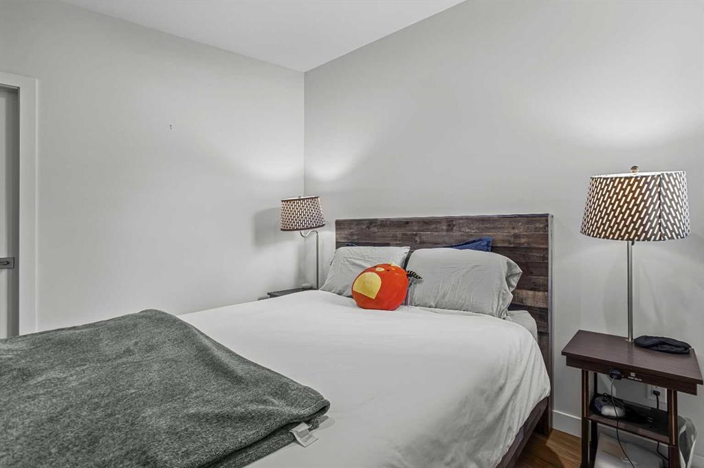 The spacious bedroom provides a quiet retreat with generous closet space and easy access to the well-appointed 4-piece bathroom. In-suite stacked laundry and additional storage add convenience and practicality.