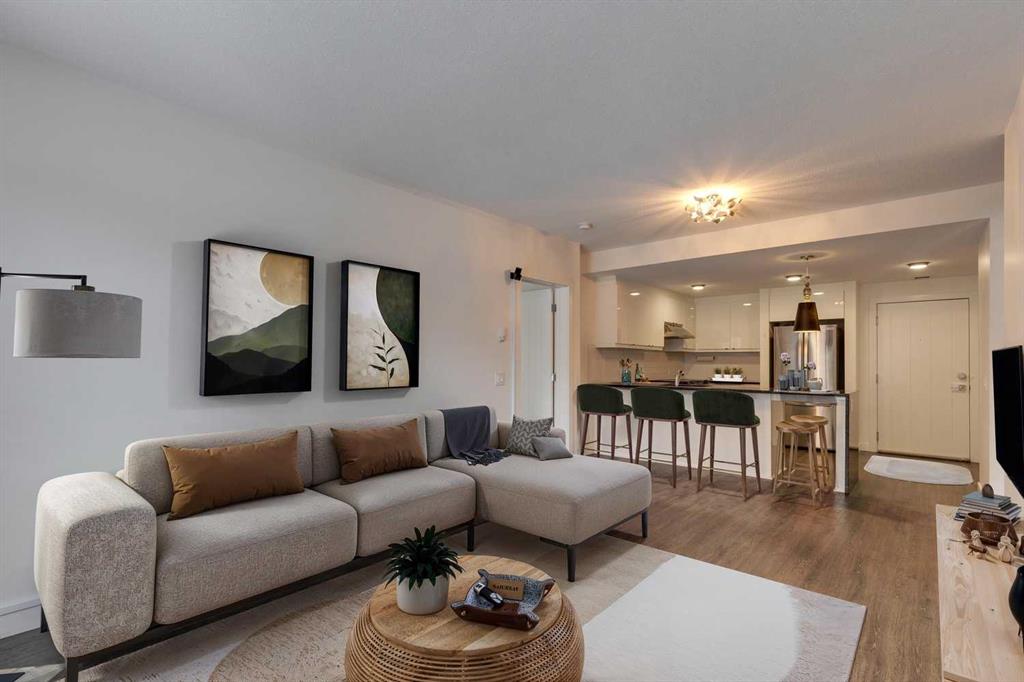 Welcome to Valmont at Aspen Stone—this main floor unit is where lifestyle, location, and luxury converge. Located directly across the street from from Guardian Angel School, and within a 10-minute radius of three of Calgary’s most esteemed private schools. Transit is effortless with four bus stops within a 5-minute walk and the 69th Street SW LRT station less than a 5 minutes drive away. For weekend escapes, Stoney Trail is only 7 minutes drive away, connecting you quickly to major highways. Leisure options abound with the nearest golf club just 10 minutes away, numerous parks and pathways for nature walks, and local gems like Blush Lane Organic Market and the famous Ladybug Café French bistro—just a 5-minute walk from your door. This beautifully appointed 2-bedroom, 2-bathroom condo offers 933 sq ft of thoughtfully designed living space. The kitchen is a true showpiece with waterfall granite countertops, stainless steel appliances, pendant lighting, and full-height cabinetry. The open-concept layout flows into the dining and living areas, enhanced by motorized remote-control sheer blinds, a Bose home theatre system, and a portable air conditioner included for year-round comfort. Large windows provide serene garden views, while the privacy-focused floorplan places bedrooms on opposite sides of the unit. The primary suite features a walk-through closet, blackout blinds, and a spa-inspired ensuite with soaker tub and tiled glass shower. A spacious in-suite laundry room adds convenience and storage. Additional perks include a heated underground parking stall located near the elevator, a separate storage locker, and a quiet location within the building. Residents enjoy fitness facilities, guest suites, a car wash, and ample visitor parking—all in a well-maintained, pet-friendly community. THIS UNIT OFFERS A RARE BLEND OF LUXURY FINISHES, UNBEATABLE LOCATION, AND EVERYDAY CONVENIENCE IN ASPEN WOODS —PERFECT FOR FAMILIES, PROFESSIONALS, OR INVESTORS.