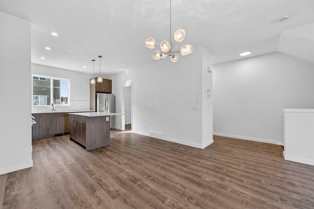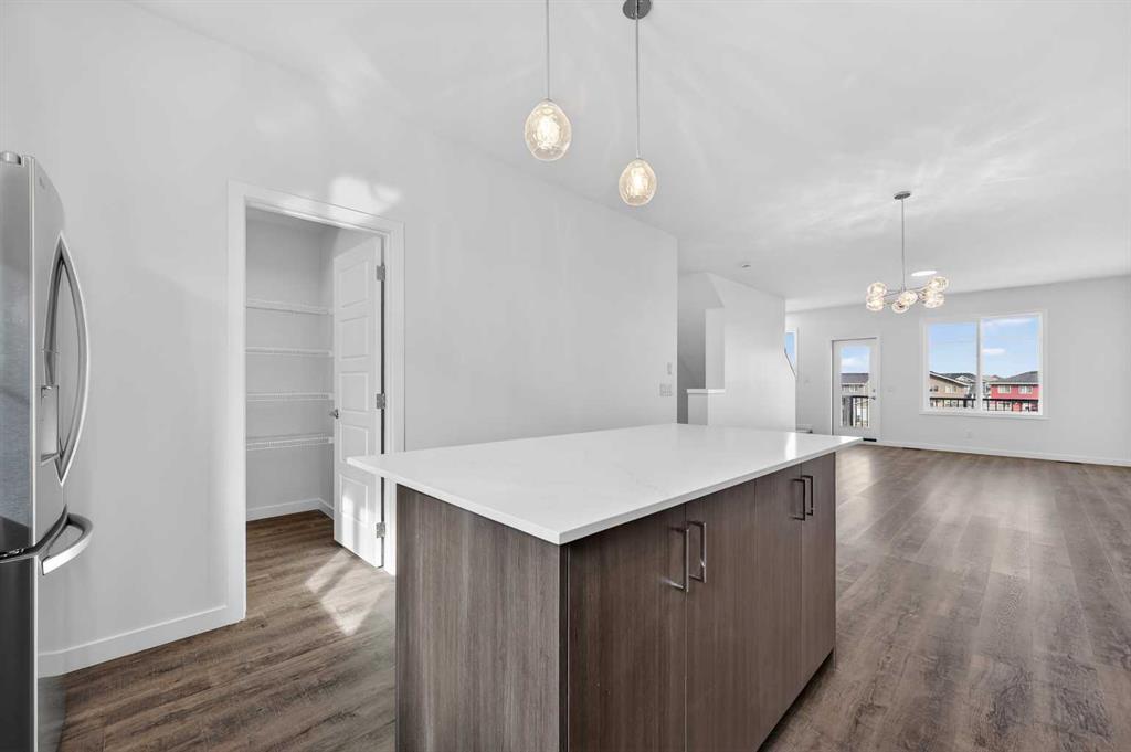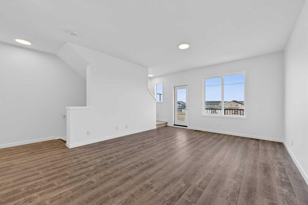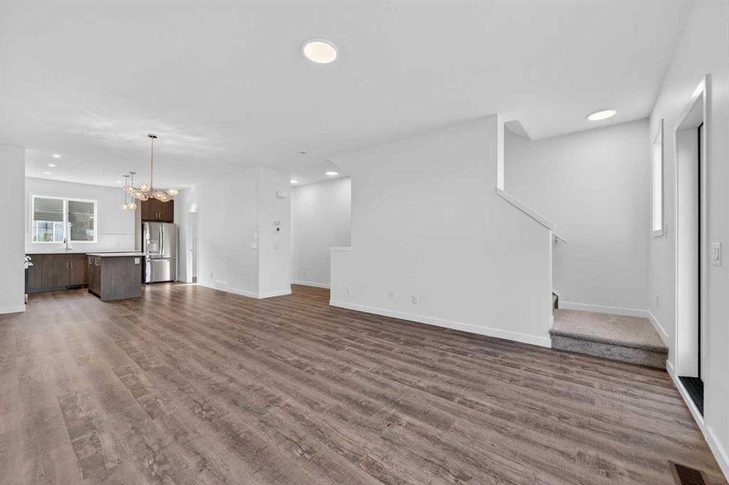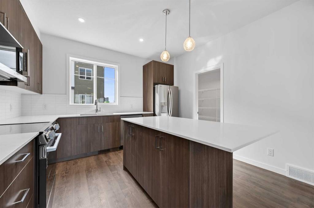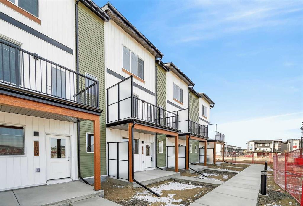 StreetSide proudly presents this highly desired interior-unit townhome that offers a sophisticated blend of expansive living space and elegant modern finishes. Designed with versatility in mind, the residence features four spacious bedrooms—including a convenient lower level bedroom ideal for guests or a home office—and two and a half well appointed bathrooms. The heart of the home is an open-concept main floor that flows seamlessly onto a private balcony, perfect for indoor-outdoor entertaining. Culinary enthusiasts will appreciate the chef-inspired kitchen, which comes standard with modern dark slab-style cabinetry, a full bank of storage drawers, polished white quartz countertops, and premium stainless steel appliances. The interior aesthetic is defined by contemporary durability, featuring luxury vinyl flooring throughout the primary areas and premium 8lb underlay carpet for added comfort on the stairs and upper level. Practicality meets luxury with a dedicated upper-level laundry room and an attached double car garage. Located within Redstone Square this home places you at the heart of the dynamic Redstone neighborhood. Enjoy the ease of a convenient location with quick access to major routes, including Stoney Trail, ensuring you are never far from the city’s best. The community is strategically positioned near future commercial developments, promising shops, services, dining, and entertainment options just moments from your doorstep.