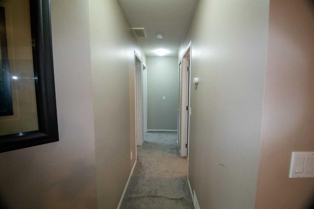 Spacious 4-bedroom, 2-bathroom condo offering a rare combination of comfort and functionality in High River, featuring more than 1700 square feet of living space. Ideal for families, both single families and multi-generational, first-time buyers, or investors, this well-maintained home features an open-concept living area with a cozy gas fireplace and a private deck off the living room—perfect for relaxing or entertaining. The kitchen includes a refrigerator with a built-in icemaker and a large pantry, while the in-suite laundry boasts a top-end, full-sized washer and dryer for your convenience. Both bathrooms are 4-piece, with one featuring a deep soaker tub for added comfort. Ample storage is available throughout, including in-suite storage and two walk-in closets, one of which is in the primary bedroom. All four bedrooms are equipped with custom blackout blinds, offering privacy and restful sleep. Natural light fills the home, and the flexible layout allows the fourth bedroom to serve as an office, guest room, or hobby space. Located in a quiet, family-friendly area, the property is within minutes of schools, parks, shopping, and just a short commute to Calgary. Move-in ready and equipped for comfortable living, this is a rare opportunity to own a spacious and versatile home in High River. The entry is designed to be separate for 2 bedroom lower suite.