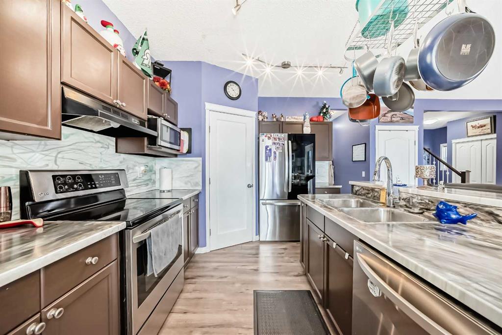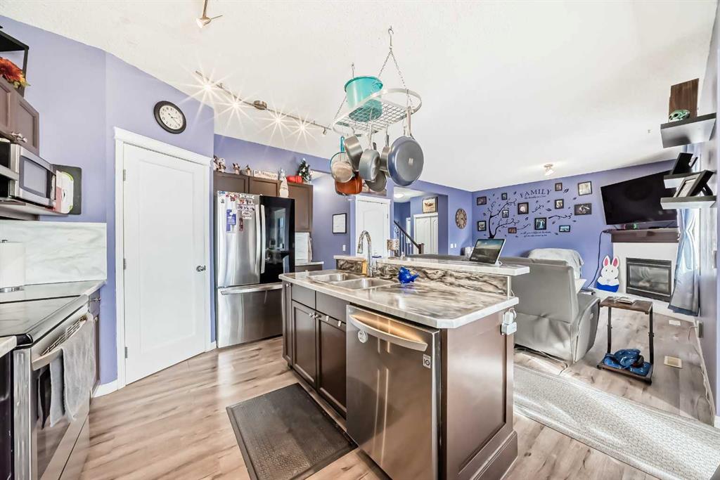 **Open house Saturday March 7 from 1:00-3:00** Looking for the home that has it all. You found it! Lake community, walking distance to schools for all ages, golf course, brand new pickleball courts opening soon and all season lake! This home offers a corner lot, 3 plus bedrooms upstairs. The bonus room can also be a fourth bedroom with a closet. Laundry room is also conveniently located upstairs. Mountain views from the large primary and back bedroom. Main floor has new vinyl plank flooring throughout and going up the stairs. All appliances are bought within the last four years including the smart fridge and dishwasher. The new composite deck is a great size for all those out door bbqs. The permanent lights all around the outside of the house helps you light up the family functions. Don’t worry about watering. You have irrigation ready to go. You also have Greendrop paid for this spring summer season. You are also lucky to have only one neighbour and a walking path to the parks and loke behind you. Crystal shores in the only LAKE community in Okotoks. It can be enjoyed in the summers for swimming, fishing, kayaking and the beach. Winters you can take the family skating! You are located by 32 street giving you easy and quick access for commuting to the city. Call your favourite realtor to come check out your new home!
