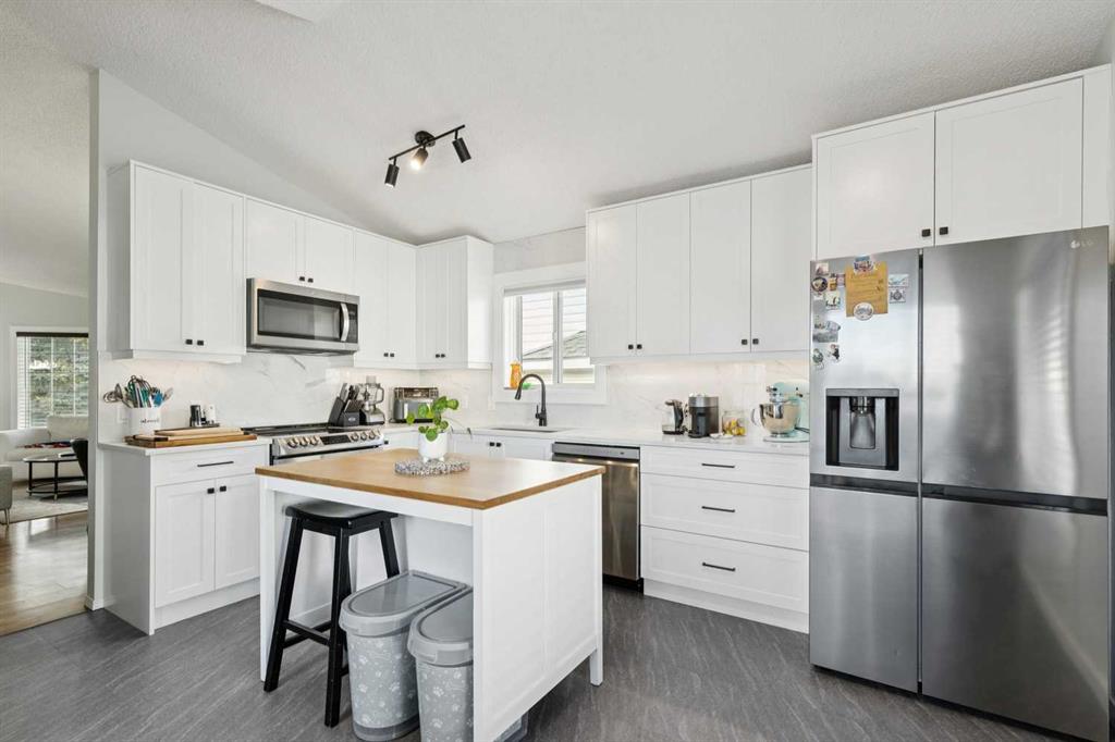 Step inside to a thoughtfully curated interior where comfort and functionality meet. The main floor features a traditional layout with defined living and dining spaces, creating a warm and inviting atmosphere ideal for both everyday living and entertaining. The updated kitchen is a true highlight, showcasing quartz countertops, stainless steel appliances, and ample cabinetry—perfect for home chefs and hosts alike. The spacious primary suite serves as a private retreat, complete with a walk-in closet and a fully renovated ensuite featuring modern fixtures and a large walk-in shower. Two additional bedrooms on the main level are generously sized and share access to a beautifully updated 4-piece bathroom. The fully developed lower level offers exceptional versatility, anchored by a large flex room that can easily function as a second family room, home office, gym, or play space. A fourth bedroom provides added privacy for guests or growing families, complemented by a stunning 3-piece bathroom. Step outside to your private backyard oasis, where mature trees and lush landscaping create a serene setting. The patio is ideal for summer gatherings, morning coffee, or quiet evenings surrounded by nature. Located close to excellent schools, parks, pathways, and everyday amenities, this move-in-ready home delivers the perfect balance of comfort, style, and convenience. Don’t miss your opportunity to own this fully renovated Hawkwood gem—book your private showing today.