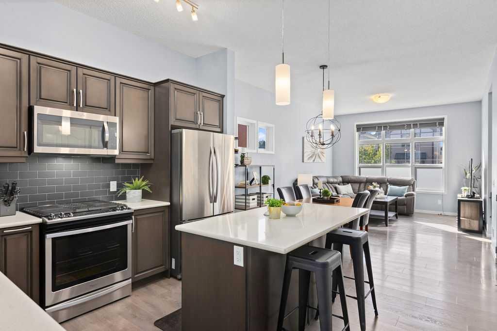 One of the LOWEST PRICED homes in Mahogany! This 3-bedroom, 2.5-bathroom bungalow is brimming with upgrades, including AC, a HUMIDIFIER, SMART THERMOSTAT, WATER SOFTENER and NEW CARPETS. Step inside to discover a bright, open-concept main floor with soaring ceilings and LARGE WINDOWS that fill the home with natural light. The gourmet kitchen is a chef’s delight, complete with sleek QUARTZ countertops, a GAS STOVE, premium STAINLESS-STEEL APPLIANCES, a stylish tile backsplash, and a central island—perfect for entertaining or casual meals. A spacious pantry adds practical STORAGE to this elegant space. The main floor also features an inviting living room and dedicated dining area, along with a private primary suite boasting large closets and a luxurious 4-piece ensuite with dual sinks and a glass-enclosed shower. A convenient MAIN- FLOOR LAUNDRY room, 2-piece powder room, and LUXURY VINYL PLANK FLOORING complete the level. Downstairs, the FULLY FINISHED basement offers versatility with a rec room WIRED FOR SPEAKERS, TWO BEDROOMS—each with WALK IN CLOSETS, and a modern 4-piece bathroom. Enjoy faster connections with upgraded CAT 6 ETHERNET WIRING. Whether you’re hosting guests, working from home, or creating space for teens or hobbies, this level delivers. Step outside to enjoy LOW – MAINTENANCE LANDSCAPING with garden beds and relax or entertain in the private backyard oasis—complete with a BBQ GAS LINE, spacious patio, and covered GAZEBO with curtains. The FULLY FENCED backyard also includes a gravel PARKING PAD with ample room to comfortably park a vehicle in front of the large storage shed—a rare combination that highlights the generous lot size and smart layout. This home has been FREHLY PAINTED and PROFESSIONALLY CLEANED, and sure to impress! Mahogany offers residents exclusive access to two private beaches, a four-season Beach Club, and year-round activities—from summer swimming and paddleboarding to winter skating and ice fishing. Scenic pathways wind through wetlands, parks, and playgrounds, perfect for walking, jogging, or biking. At its core, the Urban Village features shops, restaurants, cafés, fitness studios, and essential services, while top-rated schools and quick access to major roadways make Mahogany ideal for families and commuters alike. Don’t miss your chance to own in this fantastic lake community!