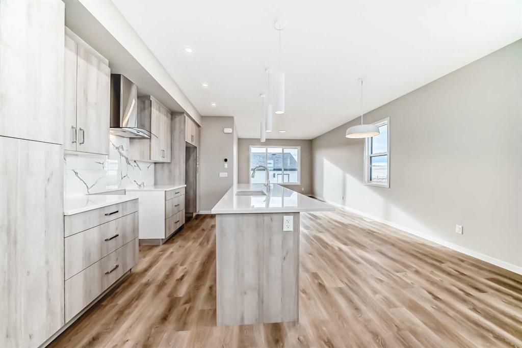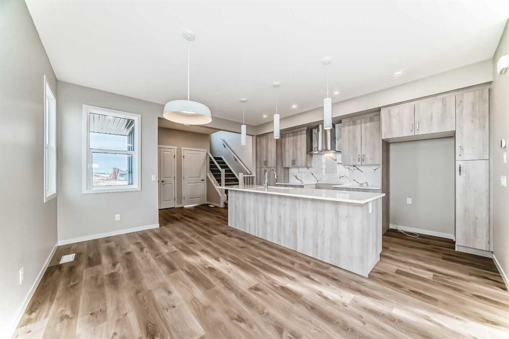 Welcome to this thoughtfully designed 1,487 sq ft home in Sawgrass Park, Airdrie’s newest NW community where everyday convenience meets the beauty of nature. Built by Hopewell Residential, one of Alberta’s most trusted and award-winning builders, this home combines quality construction, energy efficiency, and family-friendly living. From the moment you arrive, the HARDIE BOARD SIDING sets the tone with its modern curb appeal and reputation for long-lasting durability. Step inside to a bright and open main floor featuring luxury vinyl plank flooring, knockdown ceiling texture, and a well-planned layout designed for both entertaining and everyday comfort. The upgraded kitchen is as functional as it is beautiful, with QUARTZ countertops, stainless steel appliances, a CHIMNEY HOOD FAN, built-in microwave, and a second bank of drawers for added storage. Whether you’re preparing weeknight meals or hosting friends, this space delivers. Upstairs, you’ll find three generously sized bedrooms, including a private primary retreat with a walk-in closet and 4-piece ensuite. A functional office space, laundry closet and full main bathroom are thoughtful touches creating a warm, welcoming vibe. Need more space in the future? The basement is ready for your vision—complete with 9’ foundation walls, a separate side entrance, and plumbing rough-in, offering exciting potential for a legal suite (subject to City approval), media room, or personalized family space. Step outside to your 20′ x 20′ DETACHED GARAGE on your large corner lot yard. Sawgrass Park is all about connection—featuring a 5-acre central greenspace, beautiful wetlands, and plans for schools and recreation facilities that make it the ideal place to plant roots. Whether you’re heading into Calgary or exploring the growing amenities in Airdrie, everything is within easy reach. This is your opportunity to own a brand-new home with timeless features in a vibrant, growing community. Schedule your private showing today!