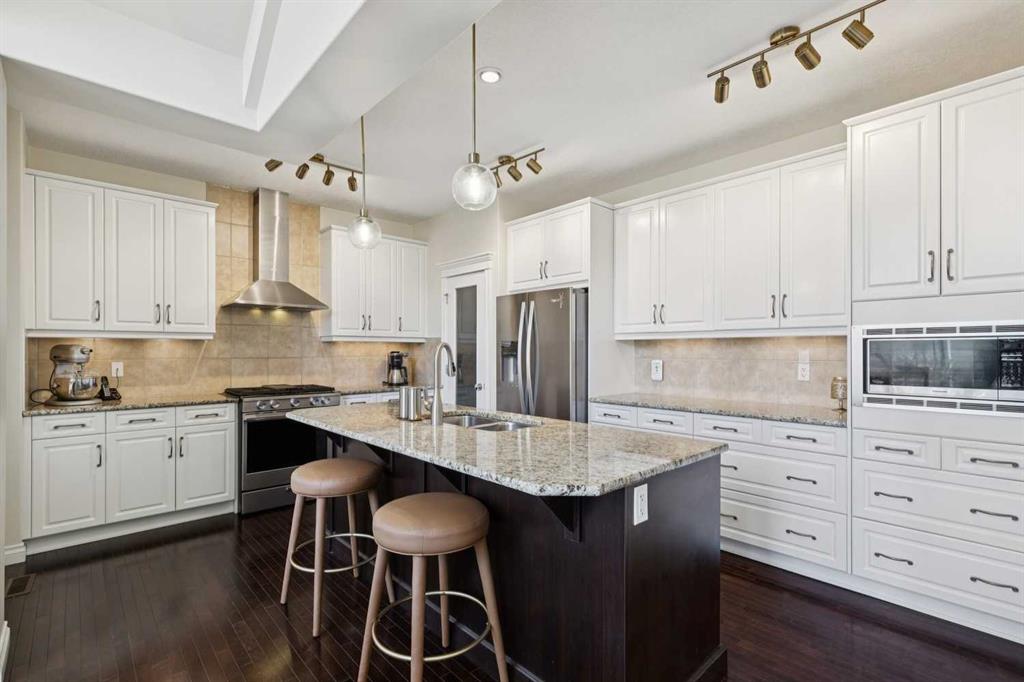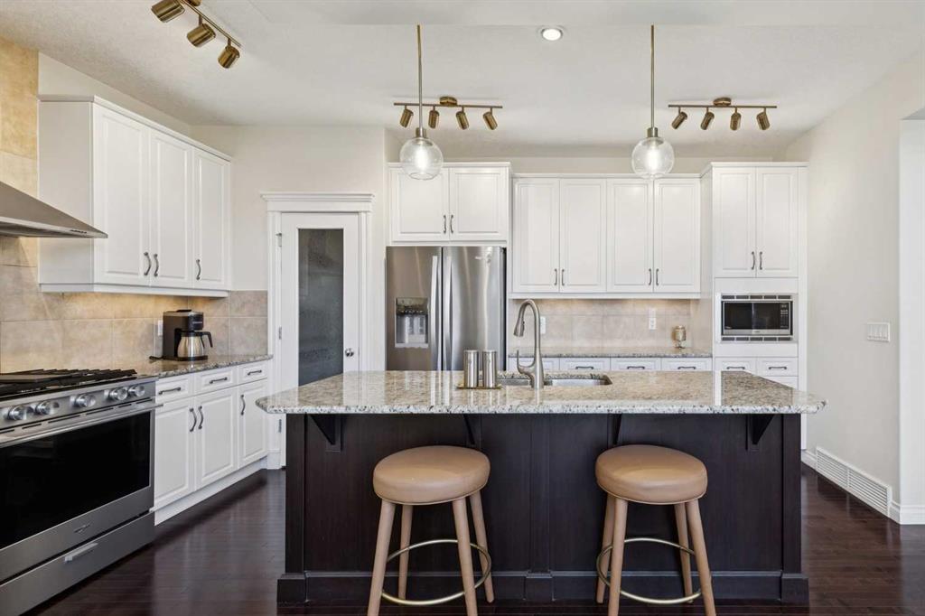 JUST LISTED in WEST SPRINGS! ORIGINAL OWNERS in this fully finished 2 storey BACKING GREENSPACE, NO NEIGHBOURS BEHIND, on a QUIET CUL-DE-SAC LOCATION, with a PRIVATE WEST FACING BACKYARD! Want the convenience of having your kids walk to two great public schools, then this is it! EXECUTIVE FINISHINGS throughout including HIGH CATHEDRAL CEILINGS, LARGE WINDOWS,, OPEN FLOOR PLAN, WHITE KITCHEN CABINETRY, quartz countertops, and walk through pantry. Massive island, BUILT-IN MICROWAVE, 5 BURNER GAS RANGE, HARDWOOD FLOORING, and double sided gas fireplace! The main level work from home office is tucked away at the front of the home for plenty of privacy. IRON SPINDLE RAILING leads to the upper level to a BONUS ROOM, 3 large bedrooms including the king sized primary, beautiful 5 PCE ensuite with tiled shower, walk-in closets, and guest bathroom. The lower level is beautifully finished with HIGH 9’ CEILINGS, large recreation room, WET BAR, 4th bedroom, 3 PCE bathroom, and large mechanical room for plenty of storage. The DOUBLE ATTACHED GARAGE is large enough to fit 2 SUVs! So many extras in this home – central air conditioning, flat finished ceilings, under cabinet lighting, pot lights, 200 AMP electrical panel, custom window coverings, amazing backyard, irrigation system, and walking distance to great amenities such as SOBEYS, CO-OP, SHOPPERS DRUG MART, FERGUS & BIX, the list goes on and on! $1,190,000. This property is priced to sell and will not last long!