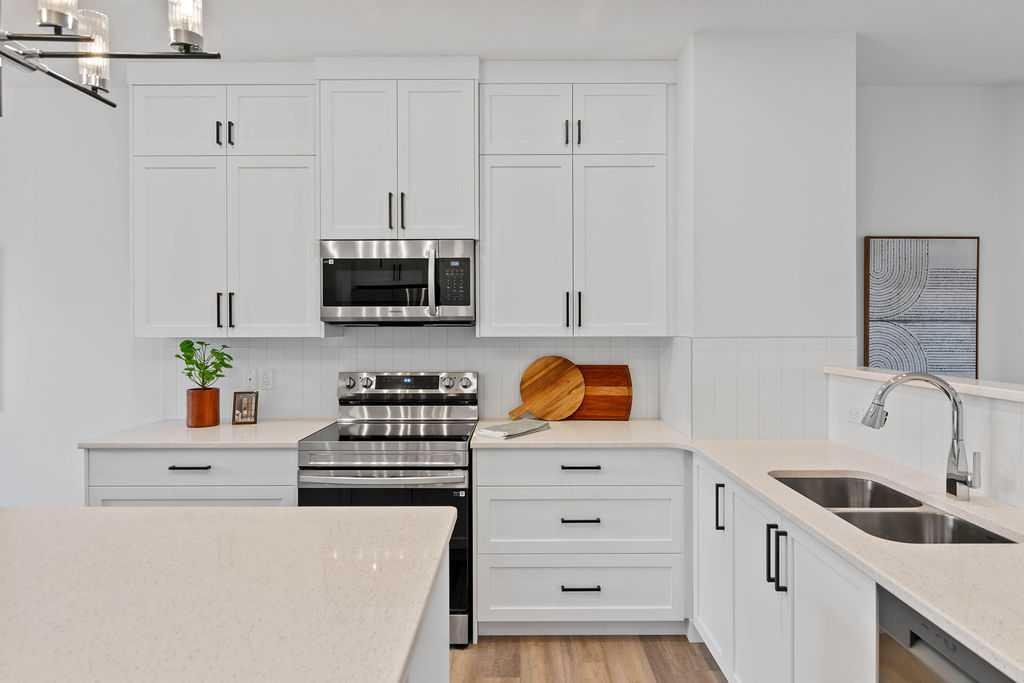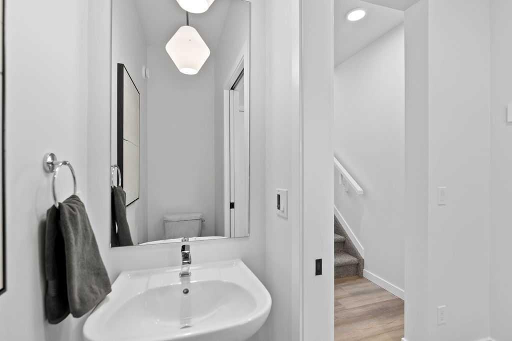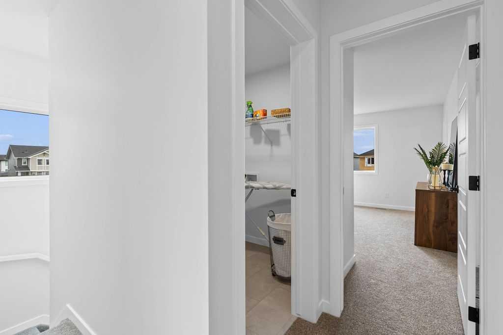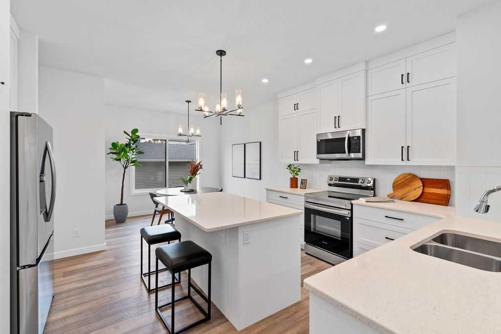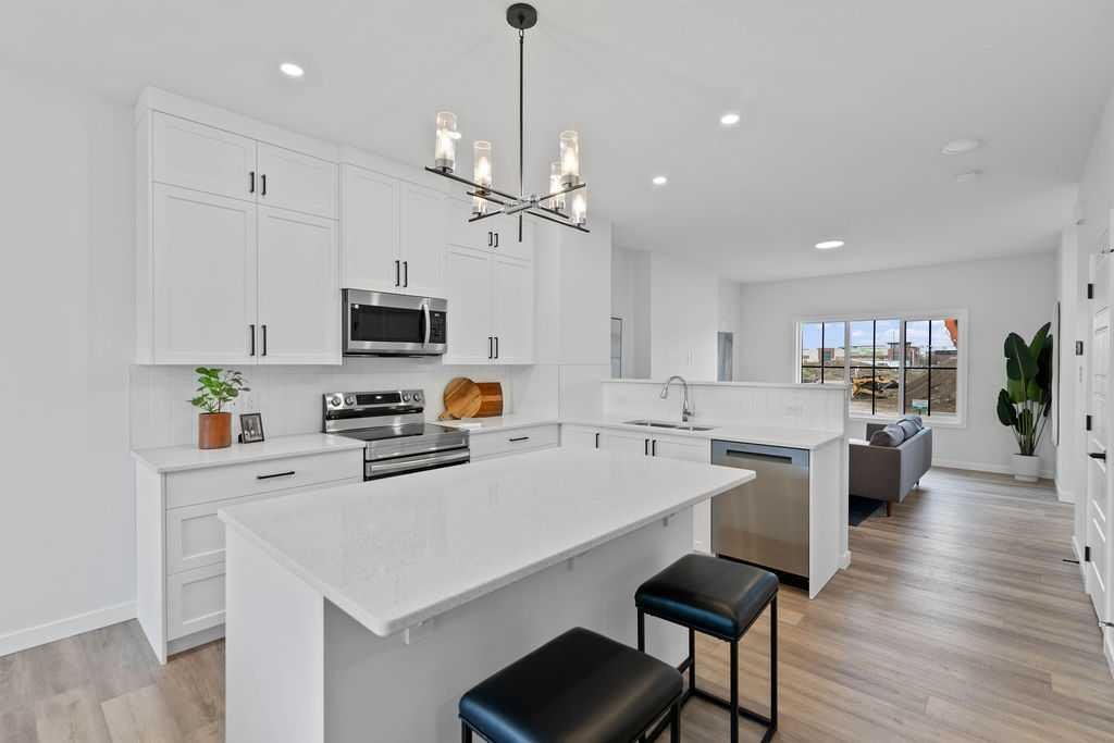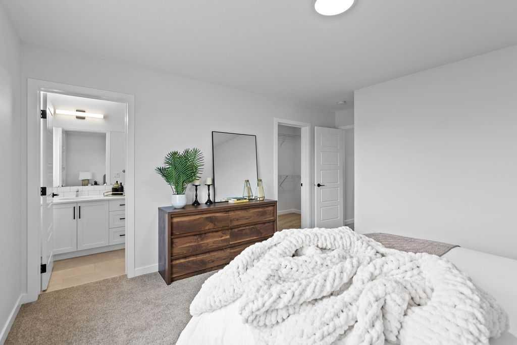 Welcome to the perfect starter home in the sought after community of Coopers Crossing! Built by award-winning builder McKee Homes, walking distance to the Coopers Promenade. It’s perfect for family living with two spacious master bedrooms, and a rear double car garage. The kitchen boasts upgraded cabinetry with two banks of drawers, quartz countertops, stainless steel appliances, and a large pantry. Enjoy luxury vinyl plank flooring throughout the main floor, large windows that flood the space with natural light, and exquisite designer detailing. Upstairs, the owner’s suite features a walk-in closet and ensuite, complemented by two additional bedrooms, a full bathroom, and a laundry room. Take advantage of this incredible opportunity to own a brand-new home in one of the last remaining opportunities in Coopers Crossing.