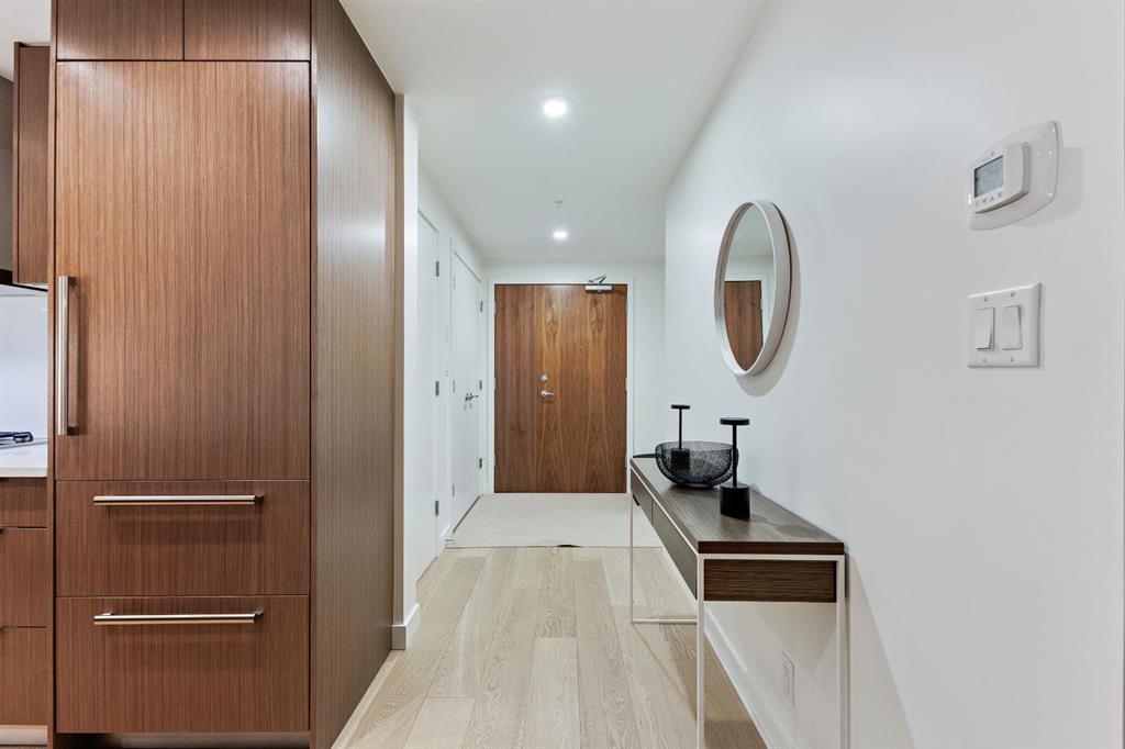 Welcome to Landmark at Waterfront, a boutique 5-storey executive condominium building perfectly positioned along the Bow River. This stunning 2 bed / 2.5 bath, plus den condominium combines luxury, sophistication, and functionality in one of Calgary’s most sought-after downtown addresses. Step inside to a spacious foyer featuring a conveniently located powder room and elegant finishes that set the tone for the home. Continue down the hall to the gourmet kitchen with marble and quartz countertops, complete with Wolf gas cooktop, Wolf built-in oven and microwave, Sub-Zero refrigerator, and Sub-Zero wine fridge. The kitchen is enhanced with owner-added built-in shelving, providing additional storage. The spacious living area features a stunning gas fireplace with a marble mantle, Herman Miller pendant lighting in the dining room, and large windows that flood the space with natural light. Adjacent to the living room is a spacious office/den that is perfect for working remotely. The primary bedroom is a serene retreat, offering a walk-in closet and a luxurious 5-piece ensuite with dual vanity, glass shower, and soaker tub. The secondary bedroom also includes its own 3-piece ensuite, providing comfort and privacy for guests or family members. One of the home’s most impressive features is the oversized outdoor patio — a rare offering in downtown living — perfect for entertaining, relaxing, or providing a great space for dogs. This exceptional residence includes two side-by-side underground parking stalls and a massive private storage room with custom shelving. Enjoy the best of urban living along the Bow River, with direct access to the pathway network, nearby restaurants, shops, and amenities — all within steps of your door. Landmark at Waterfront offers an unmatched lifestyle of comfort and convenience, including 24 hour security.