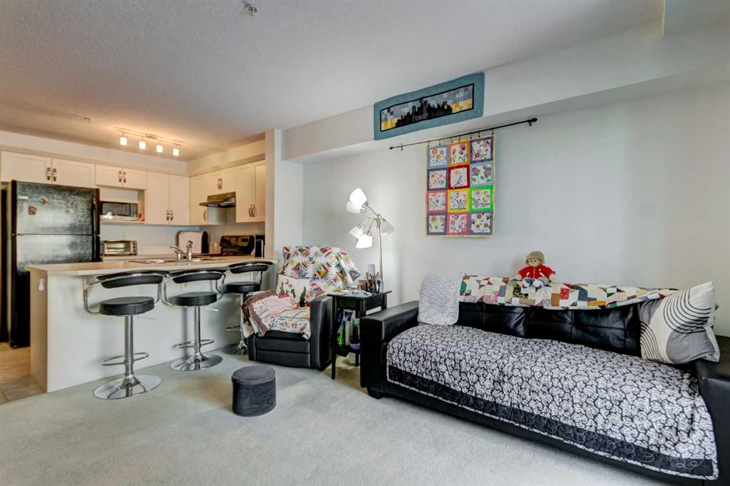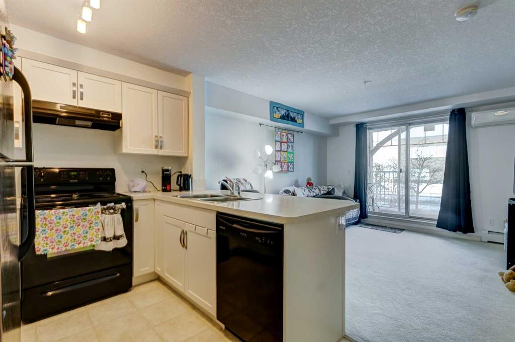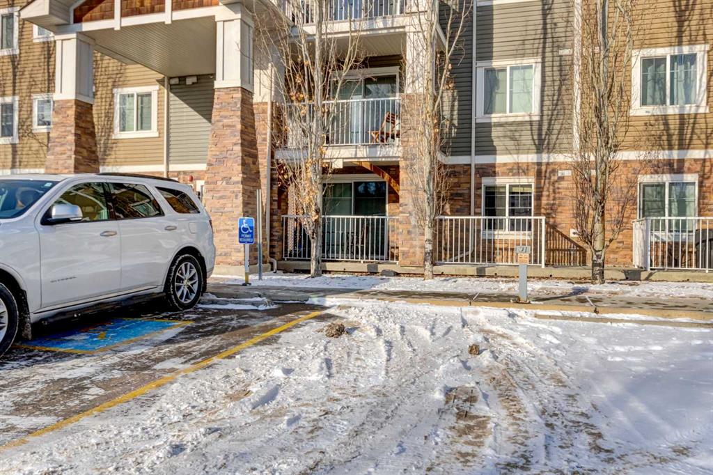 Main floor convenience and thoughtful design come together in this well cared for 2 bedroom home, ideally positioned just steps from the lobby entrance and titled surface parking, making daily comings and goings simple and accessible for anyone seeking minimal stairs and ease of mobility. Pride of ownership is immediately apparent in a one-owner residence that has been kept neat as a pin and maintained with care. An open floor plan creates a comfortable flow for everyday living, anchored by a crisp white kitchen offering ample storage, modern fixtures and a peninsula island with breakfast bar seating designed for casual meals and easy conversation. Clear sightlines connect the kitchen to the adjacent living area, allowing the space to function effortlessly for relaxing, hosting or keeping connected throughout the home. Sliding patio doors extend the living space outdoors to an exceptionally large 25’ covered ground-level patio complete with a gas line, providing a sheltered setting for summer barbecues, morning coffee or quiet outdoor relaxation. Two well-proportioned bedrooms offer flexibility for guests, home office use or shared living, while a full 4-piece bathroom and in-suite laundry add everyday practicality. Air conditioning ensures year-round comfort. Building amenities enhance daily life with a welcoming lobby featuring a cozy seating area, fireplace and library, creating a comfortable space to relax or connect with neighbours. Titled parking and a separate storage locker support an organized, low-maintenance lifestyle. Walkable access to shopping, coffee, medical services, dining and everyday conveniences places essentials within easy reach, while nearby pathways invite regular walks and connection to the surrounding community. Close proximity to Fish Creek Park, community recreation amenities and major roadways including Deerfoot and Stoney Trail ensures outdoor enjoyment and efficient commuting, making this location equally well suited to downsizers, professionals or anyone valuing comfort, accessibility and connection.