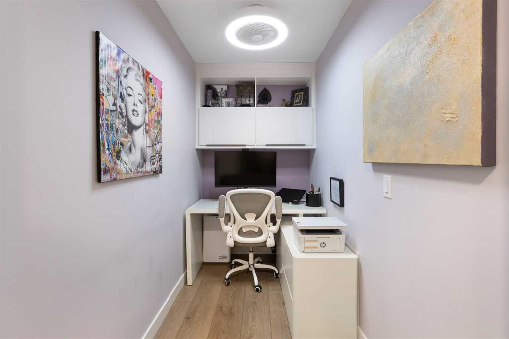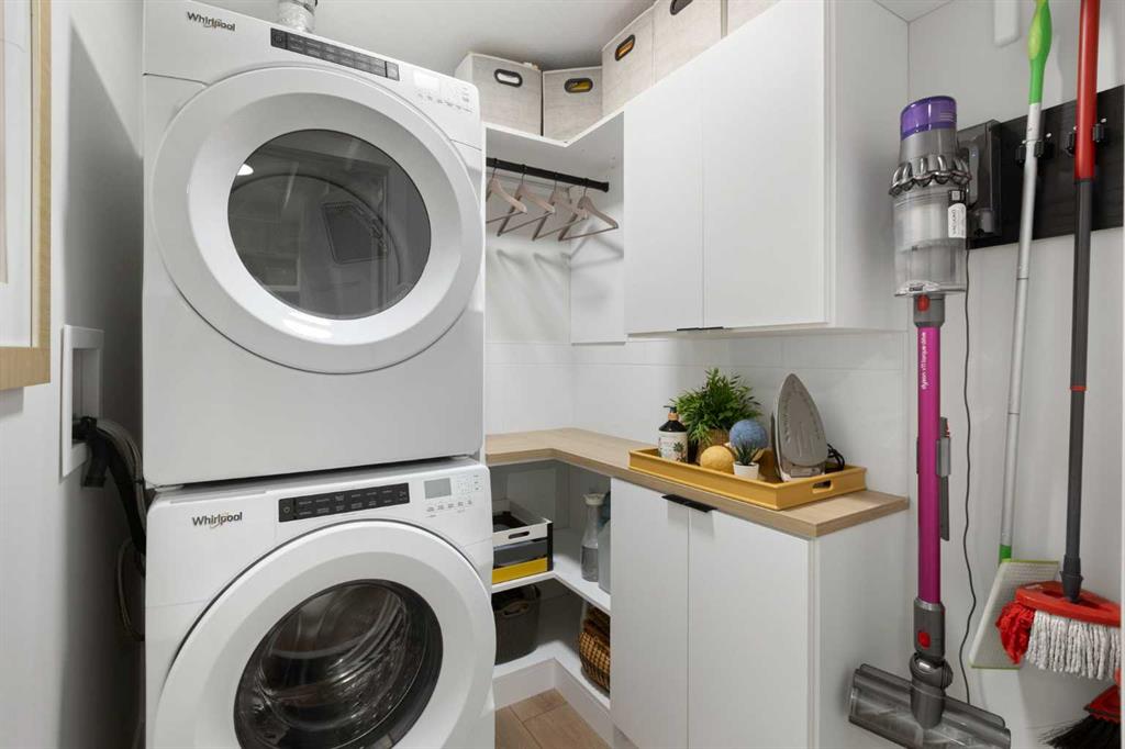 Welcome to this exceptional, fully upgraded 2-bedroom plus den corner unit in the heart of the highly sought-after Wolf Willow community. Offering 1,165 square feet of beautifully designed main-floor living space and over $70,000 in custom renovations, this home seamlessly blends luxury, comfort, and convenience. The expansive primary retreat easily fits a king-sized bed and features a spa-inspired 4-piece ensuite with double vanities, a 5-foot walk-in shower, and a custom California walk-in closet complete with built-in organizers and drawers. The generous second bedroom includes a custom step-in closet and sits next to a stunning 4-piece guest bath with a full-size tub and tile carried to the ceiling. A versatile den with double French doors creates the perfect home office, studio, or cozy reading space. Designed for both elevated entertaining and everyday living, the chef’s kitchen is anchored by a show-stopping 10-foot quartz island. You’ll also find ceiling-height cabinetry with pull-out drawers, upgraded stainless steel appliances, a built-in coffee bar, undermount lighting, and a garburator. The kitchen flows effortlessly into a dedicated dining area and a bright, inviting living room featuring a fireplace and expansive windows that flood the space with natural light. Refined finishes continue throughout with 9-foot ceilings, luxury vinyl plank flooring, air conditioning, custom wood paneling with built-in soundproofing, and 3M privacy window tinting. The full-size in-suite laundry room offers additional custom cabinetry for optimal storage and functionality. This unit includes a titled, oversized accessible underground parking stall and two full-size storage lockers—one underground and one conveniently located on the main floor. Residents enjoy secure bike storage, ample visitor parking, and direct access to a private walk-out patio with a gas hookup for a BBQ and fire table, which also serves as a secondary entrance. Ideally located just steps from Fish Creek Park, the Bow River, a 9-acre off-leash dog park, 80 kilometers of scenic bike paths, playgrounds, and Blue Devil Golf Course, this home offers the perfect balance of nature and urban convenience. Everyday amenities, coffee shops, and major routes including Stoney Trail and Macleod Trail are just minutes away. Set within a pet-friendly building with low condo fees and a welcoming community atmosphere, this move-in-ready condo is an outstanding opportunity for first-time buyers, downsizers, or investors alike. Experience the best of Wolf Willow living—schedule your private showing today.