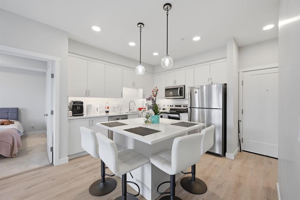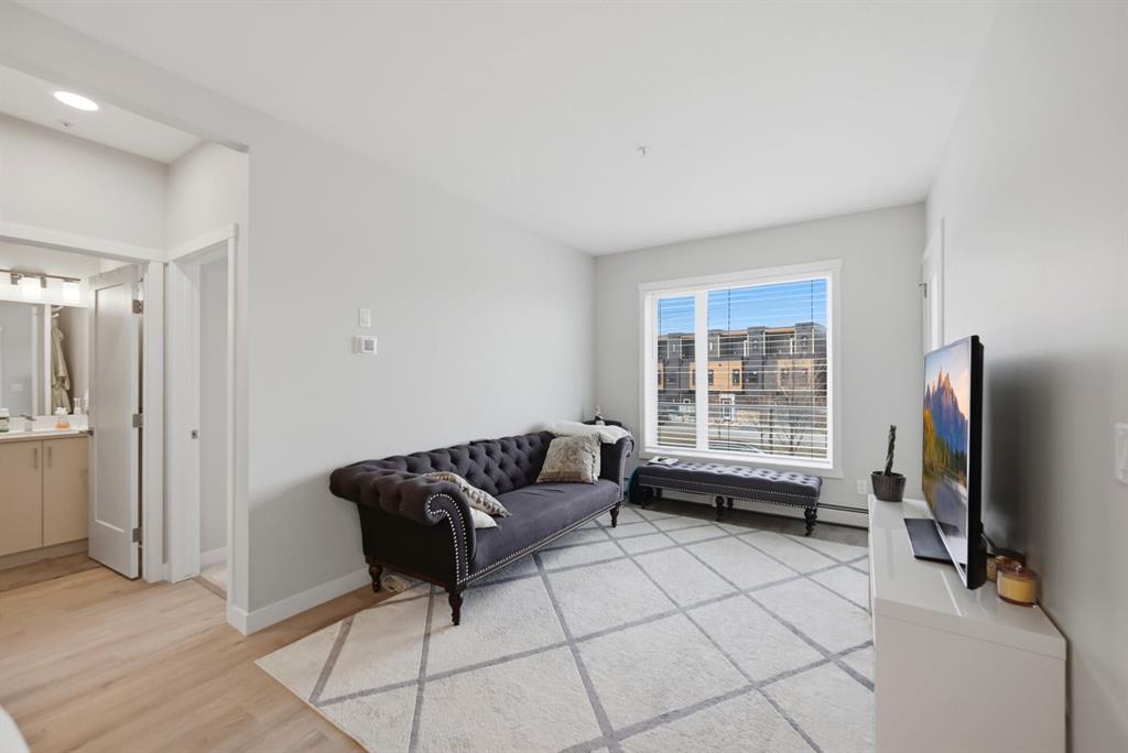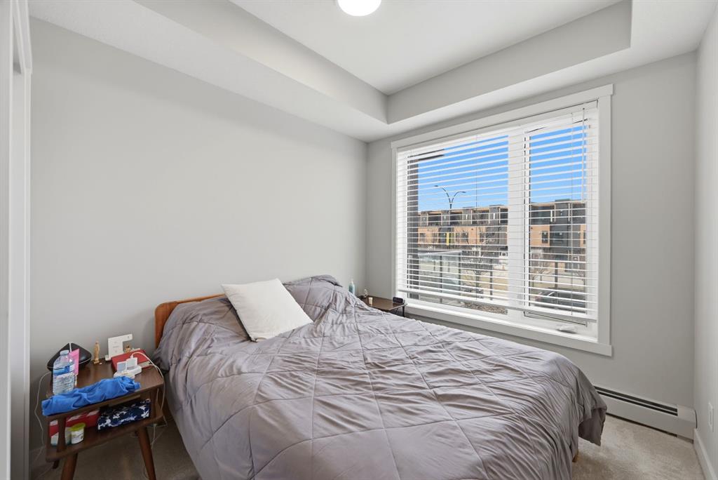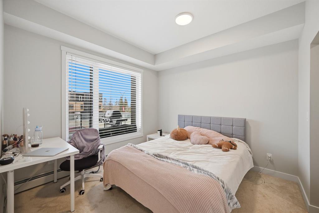 ATTENTION FIRST-TIME BUYERS & INVESTORS! Welcome to your next purchase, this 2 bedroom, 2 FULL bathroom condo is situated in the welcoming community of Shawnee Slopes. Connected by walkable paths this community includes shopping, schools, playgrounds, parks and is just short walk from the C-Train. This modern condo features stainless steel appliances, quartz countertops, tiled back-splash and a kitchen island with breakfast bar. Including in-unit laundry for added comfort. Featuring an ample sized living area, large windows to provide natural sunlight! A large primary bedroom with an accompanied walk-through closet and a 3pc ensuite, as well as a second bedroom and second full bathroom. A den to provide in unit storage, in addition to the titled storage unit. Forget having a cold car in winter with a titles and heated underground parking stall. A perfect home for a first-time buyers, young families or investors. Call you Realtor Today!