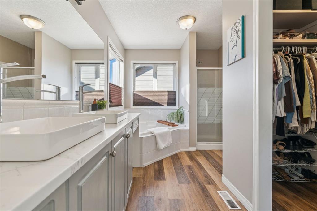 The fully developed basement offers even more living space with a generous family room, fourth bedroom, and a full bathroom with laundry and a beautifully tiled shower.
