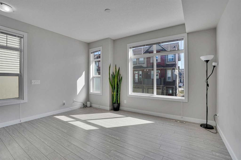 Welcome to Legacy—one of Calgary’s most vibrant and sought-after communities! This beautifully maintained 3-bedroom townhouse features 2.5 bathrooms, central air, and 3 parking spaces—ideal for a busy household. Your single attached tandem garage can fit 2 vehicles and yet there is still plenty of storage space. The extended parking pad offers a convenient solution for guests, ensuring that they have easy access to parking when visiting. In addition to the extended parking pad, there is ample visitor parking available within the complex. This abundance of parking spaces ensures that all your guests can find suitable parking during their visit. The main living level features an open-concept layout with 9-foot ceilings, creating a bright and inviting atmosphere. The modern kitchen is equipped with quartz countertops, stainless steel appliances, ample cabinetry, and a spacious L-shaped island that can also be use as breakfast bar—perfect for everyday living and entertaining. A sliding patio door leads to your private deck with a gas hookup for summer barbecues and space to relax and unwind. Upstairs, the primary bedroom provides a comfortable retreat with a walk-in closet and a 4-piece ensuite. Two additional bedrooms and a 3-piece bathroom offer flexible space for family, guests, or a home office. Conveniently located close to parks, schools, shopping, public transit, and major roadways, this home offers both comfort and accessibility. Whether you’re a first-time buyer or an investor, this move-in-ready property is an outstanding opportunity you won’t want to miss.