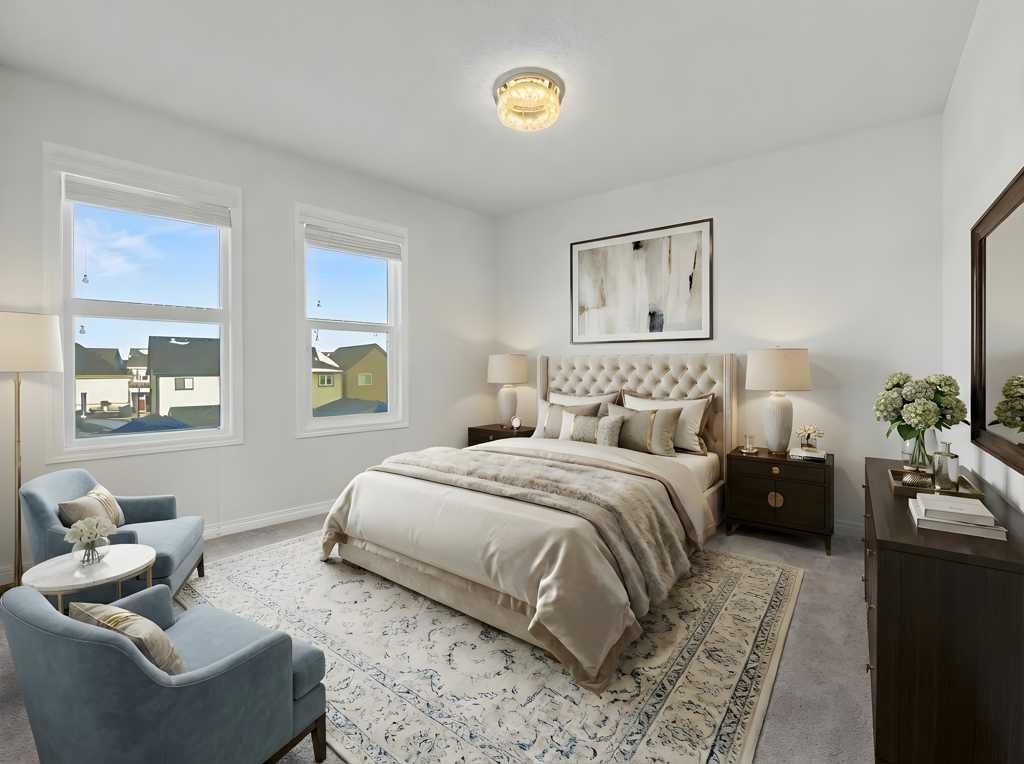 Lake Privileges in Mahogany! This “like new” two-storey Jayman-built home offers over 2,270 sq. ft. of renovated living space. The exterior features new sod and a new fence with two new gates. Inside, discover new quartz countertops throughout the kitchen and all bathrooms, complemented by new sinks, soap dispenser, and stainless steel appliances (brand new stove – never used)! The kitchen is further upgraded with high-end fixtures and a Kinetico water filtration system. The main floor shines with new luxury wide-vinyl plank flooring and designer lighting, including colour-changing disc lights. Brand new “luxury ivory wedlock” carpets throughout with upgraded thick underlay! Upstairs, the primary suite includes a private ensuite, plus two additional spacious bedrooms and a 4 piece bathroom. The entire home has been freshly repainted, including all baseboards and railings. The fully finished “warm” basement features a fourth bedroom or office, a large recreation area perfect for a home theatre, and another four piece bathroom. Technical highlights include a tankless hot water system, a high-efficiency furnace (recently serviced and ducts cleaned), triple-pane low-E windows, and solar panel rough-ins. Enjoy Hunter Douglas blinds and the peace of mind of a non smoking home that has been meticulously maintained,—having never housed children or pets and just deep-cleaned for its next owners. This zero-lot-line property also includes an oversized deck, an oversized double detached garage, and a back alley approved for paving. Perfectly situated on a quiet, family-friendly street, you are within walking distance of schools, wetlands, and shopping. Commuting is effortless with Deerfoot and Stoney Trail just 10 minutes away, plus close proximity to the world’s largest YMCA and South Health Campus Hospital. Best of all, enjoy full access to Mahogany’s famous 63-acre lake and Beach Club. From summer swimming and kayaking to winter skating and hockey, this community offers year-round sports, gymnasium access, and family-friendly activities and entertainment. This pristine property truly shows like a model home!