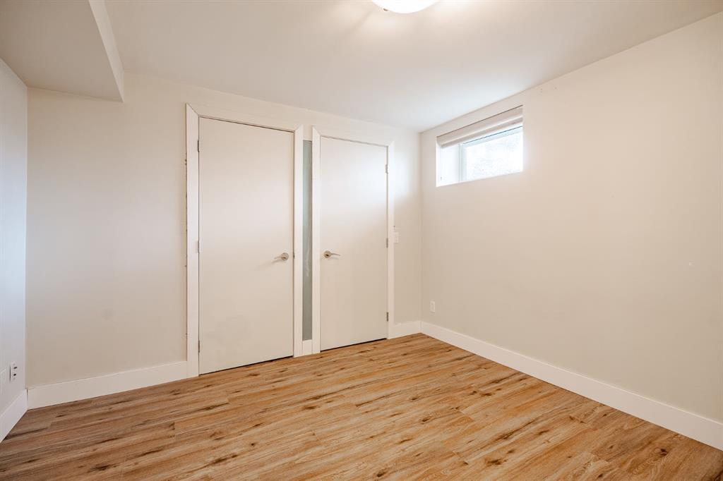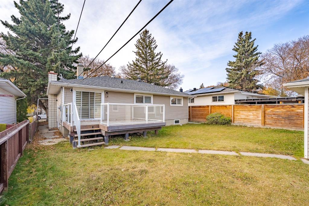 This nicely updated 5-bedroom, 2-bath bungalow sits on a 50′ x 120′ RC-G lot on one of the quietest, most charming streets in Mayland Heights. Offering 1,059 sq. ft. of living space above grade, this home has seen numerous updates over the years, including a new roof, windows, furnace, a 55 gallon hot water tank, vinyl siding, rear deck with glass railing, and electrical panel (2017). Enjoy the massive yard with a 24.5′ x 23′ insulated garage and a steel-frame fence with a wide opening for full vehicle access—perfect for additional parking or recreational use. Inside, the main floor features refinished hardwood floors, a bright and spacious living room, a functional eat-in kitchen with brand new appliances, three bedrooms, and a 4-piece bath. Step out from the kitchen to the expansive back deck and private yard—ideal for entertaining or family gatherings. The lower level offers an illegal suite, great flexibility with a separate side entrance and separation doors. It includes new luxury vinyl plank flooring, a large recreation and entertainment area, two generous bedrooms with egress windows, a 3-piece bath with a walk-in shower, and a full laundry area. Recent updates also include fresh paint throughout (walls, doors, baseboards, and trim) and a brand new washer and dryer. With its simple potential for a future legal suite, this property is a fantastic opportunity for investors, multi-generational families, or anyone looking for a turnkey home just minutes from downtown and within walking distance to schools, parks, and pathways.