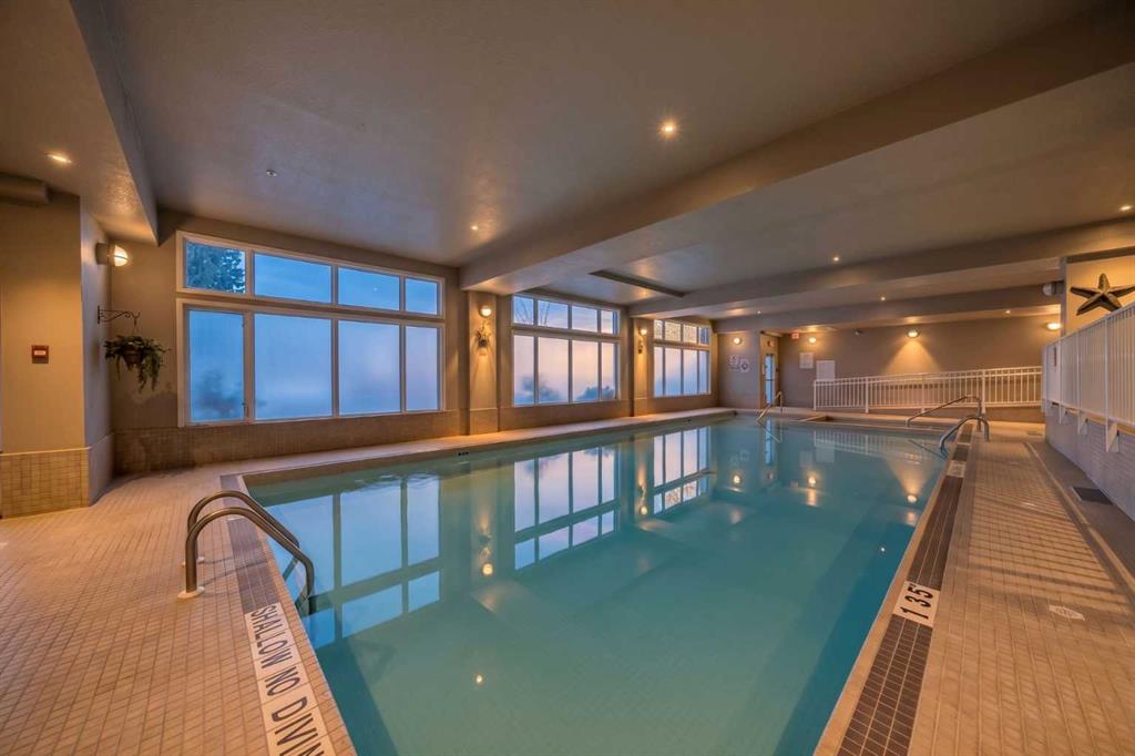 Welcome to the Sierras of Evergreen – a great 55+ development that is in great demand! The list of amenities includes a pool, hot tub, fitness centre, banquet room, meeting room, craft room, theatre, games room, workshop, wine-making room and car wash.! This 993 square foot 2 bedroom 2 bathroom home features a bright kitchen with lots of cabinets and counter space and a spacious iving room with laminate flooring. The primary bedroom has a 4 piece ensuite and a large walk-in closet. The second bedroom has french doors and is an ideal office/den area. This unit comes with a titled underground parking stall with a storage room at the end of the stall. Located across the street from Sobey’s, Tim Hortons and other fine shoppes. Come tak a look.