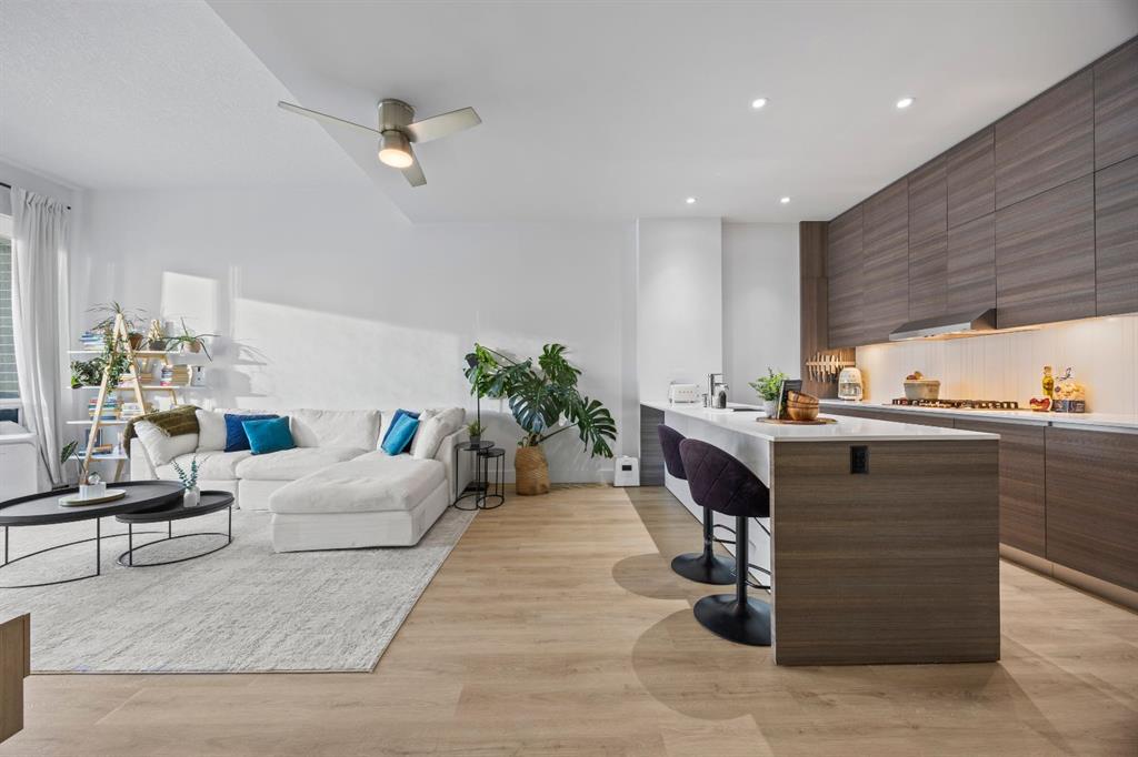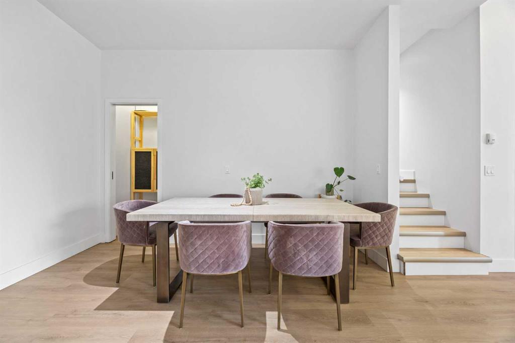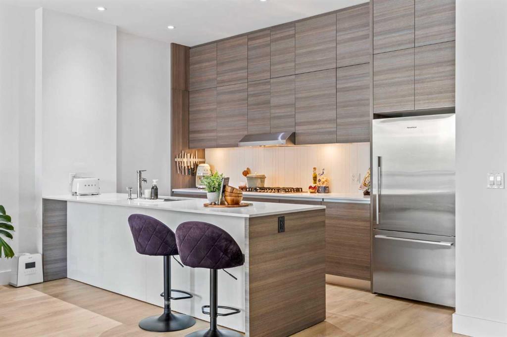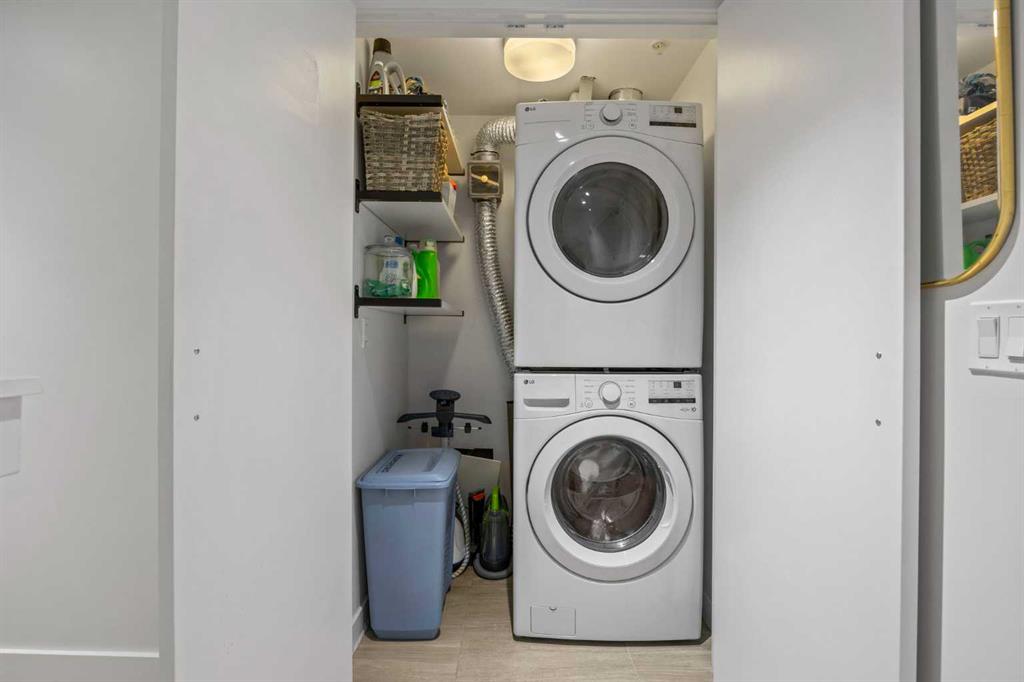 Discover a one-of-a-kind urban retreat in the heart of Calgary’s vibrant Beltline, just steps from countless premier shops, services, restaurants, cafés, and all the energy of inner-city living! This 2 storey unit features its own private, exterior entrance, welcoming you into a space defined by soaring high ceilings that create an immediate sense of openness, grandeur, and comfort. The open concept main living area is designed for effortless entertaining. The modern kitchen is equipped with stainless steel appliances, full-height cabinetry, ample storage, generous counter space, and a large island with seating for four. Adjacent you have the spacious dining area with access to a cleverly designed storage space beneath the stairs, complete with built-in cabinets ideal for pantry use, a huge perk for condo living. Throughout the home, you’ll find new vinyl plank flooring for easy, low-maintenance living, complemented by new 6″ baseboards for a clean, contemporary finish. Additional upgrades include fresh paint, a new washer and dryer, and two wall-mounted AC units to keep you comfortable year round. Upstairs, you’ll find the laundry room, complete with shelving and a stacked washer and dryer for maximum convenience. The primary bedroom is a true retreat, offering large windows and even enough room for a writing desk or vanity. It features a walk-in closet with built-ins and a luxurious 5-piece ensuite complete with a double vanity, generous counter space and storage cabinets, a soaker tub, a frameless stand-up shower, and a linen closet. The second bedroom is a great size and enjoys easy access to the second bathroom, finished with the same upscale features found throughout the home. This upper level also connects directly to the main building, where you’ll find a party room and access to the parkade. And the standout feature? This stunning unit includes its own PRIVATE, DOUBLE GARAGE with its own private storage unit, a rare offering that delivers convenience, security, and additional space you won’t find elsewhere. The building also offers concierge service for added comfort. With large windows, plenty of natural light, modern upgrades, and a truly unbeatable location, this exceptional Beltline home is bright, stylish, and move-in ready!