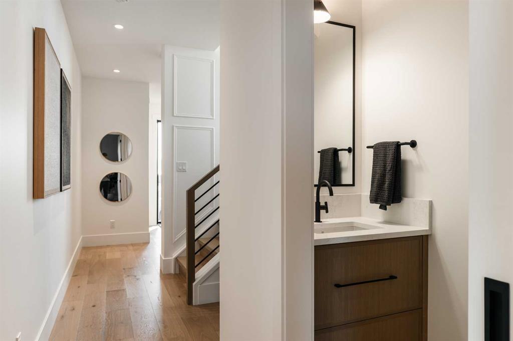 Nestled in the heart of Seventeen Hundred at Aspen Estates, this luxurious townhome with The Dalton floorplan (a design finalist with the 2025 BILD Calgary Awards) has been carefully crafted by RareBuilt Homes & offers over 2,700 sq ft of refined living space, complete with 3 bedrooms, amazing mountain views and exceptional design throughout. The airy main level with lofty 9’ ceilings, showcases engineered hardwood flooring, and expansive high end European triple glazed tilt & turn windows that flood the home with natural light. A spacious great room centers around a striking feature fireplace and opens to a large balcony with a louvered roof—perfect for year round enjoyment. A dedicated office space provides an ideal setting for work from home days. The beautifully appointed kitchen features quartz countertops, a generous island with eating bar, full height custom cabinetry, a walk in pantry, and a premium appliance package. The dining area comfortably accommodates gatherings with family and friends. A stylish 2 piece powder room completes the main level. Upstairs, the second level hosts three well proportioned bedrooms, a 4 piece bath, and convenient laundry facilities. The serene primary retreat with soaring vaulted ceiling includes a spacious walk in closet and a private 5 piece ensuite with in floor heat, dual sinks, a freestanding soaker tub, and a separate shower. The lower level offers impressive versatility with a large flex room and direct access to a walk out patio—ideal for a media room, fitness area, or family space. This level also includes a mudroom connecting to the fully finished & painted oversized double attached garage that’s EV charger ready. Additional highlights include an elevator serving all three levels, central air conditioning, six solar panels, and concrete demising walls for enhanced privacy and noise reduction. Set within an exclusive complex spanning nearly 9 acres—5.5 of which are dedicated to green space—this residence delivers an unparalleled standard of comfort, quality, and sophisticated living.