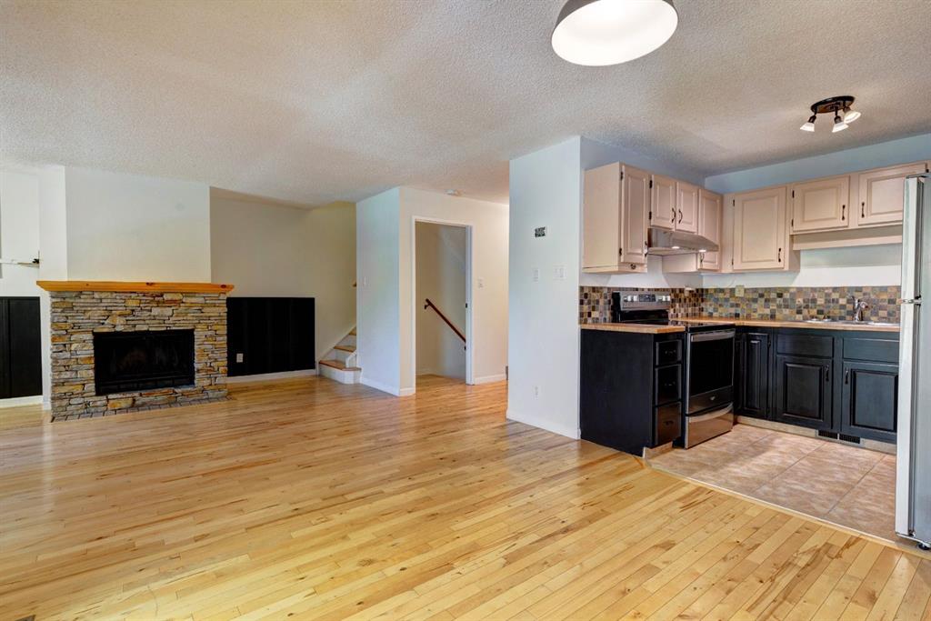 Three bedroom townhome walking distance to downtown. Thoughtfully updated and freshly painted property, offering nearly 1,800 sq ft of comfortable living across three well-designed levels. The main floor boasts a bright, functional kitchen that flows seamlessly into a spacious living room with a cozy fireplace and an inviting dining area — perfect for everyday living or entertaining. Step outside to the oversized deck, ideal for soaking up the sun or hosting relaxed outdoor gatherings. Upstairs, you’ll find three generously sized bedrooms and a four-piece bathroom, providing plenty of space for the whole family. The fully developed lower level adds even more living space with a large family room and ample storage options. Additional highlights include an attached carport with room for two cars, separate storage — perfect for bikes, skis and gear. Located in a well-maintained, professionally managed complex just minutes from downtown, the Bow River and endless hiking and biking trails.