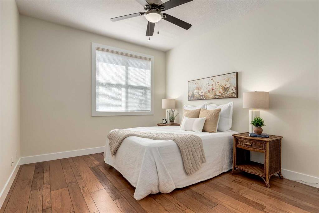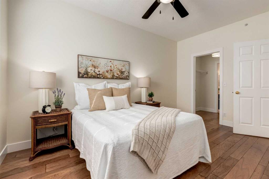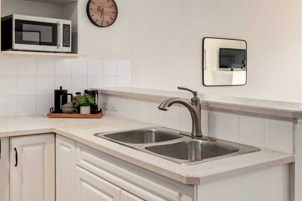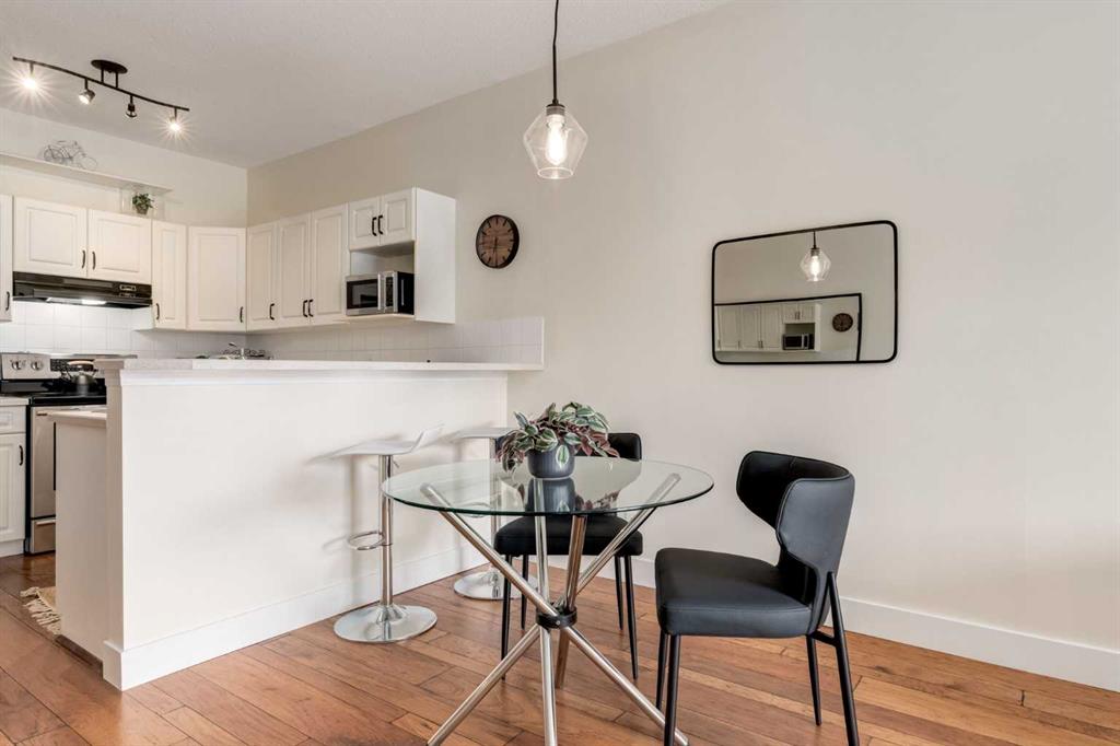 Renovated main floor condo has plenty of natural light and is move in ready! The well appointed kitchen has plenty of cabinets, granite counters with raised breakfast bar and overlooks your large living and dining rooms, perfect for entertaining. Patio doors off the living room lead to your private south facing patio. The primary bedroom has a walk through closet and 4 piece ensuite. The 2nd bedroom/den is adjacent to the 3 piece bath, great for roommates or guests. The insuite laundry room can accommodate a washer and dryer and still have storage space. You also have an assigned storage and a titled parking stall in the heated underground parkade which also has a car wash bay for the residents to use. This well maintained complex has a great location close to many great amenities of Kensington, schools, transit and an easy commute to downtown, SAIT, U of C, and the Foothills and Children’s Hospitals. Don’t miss out!