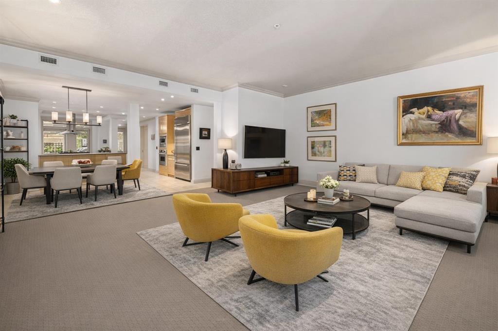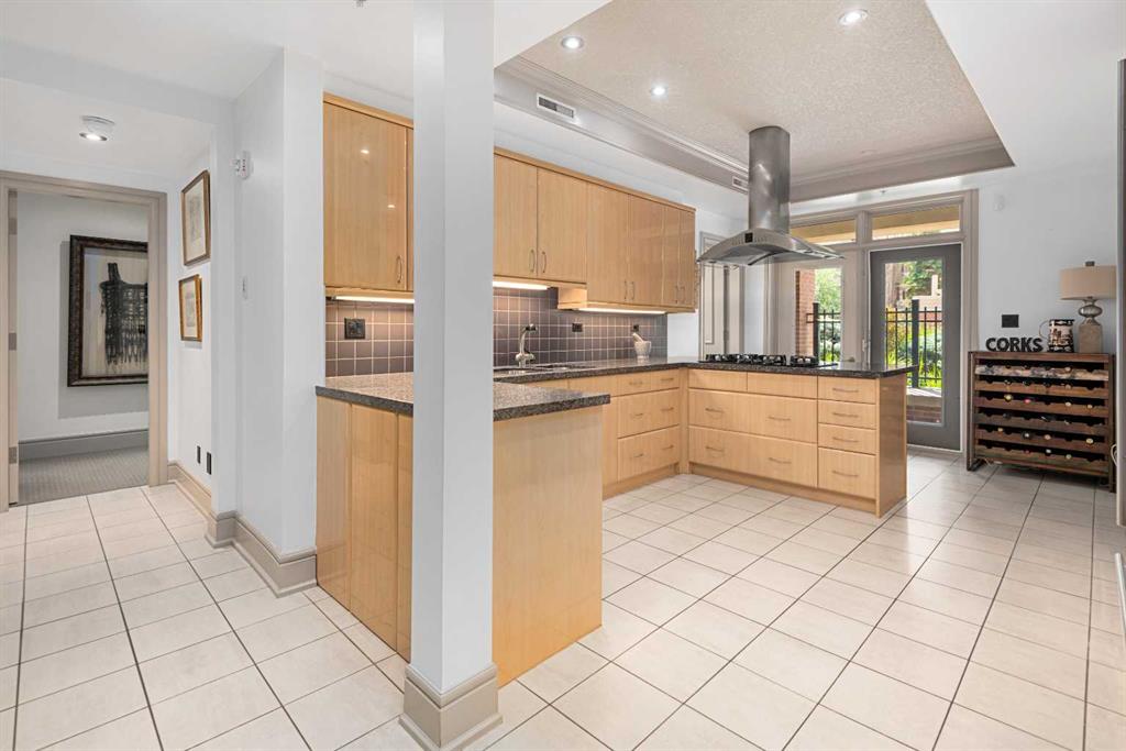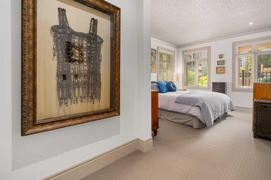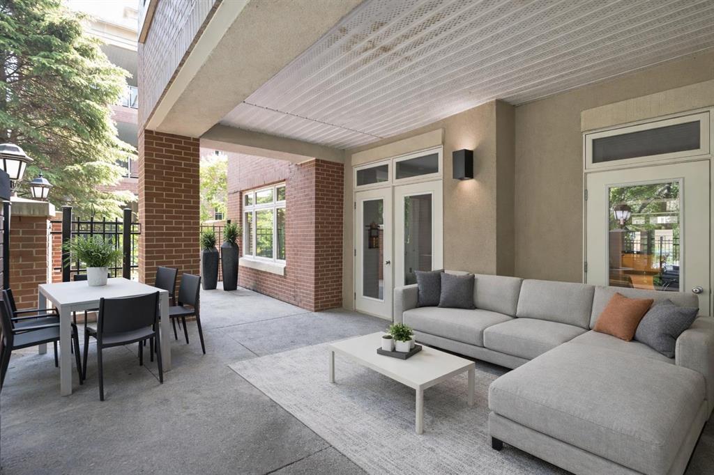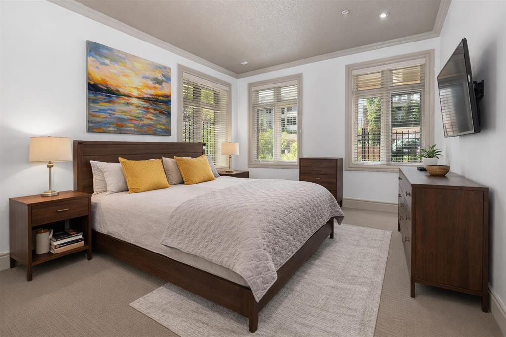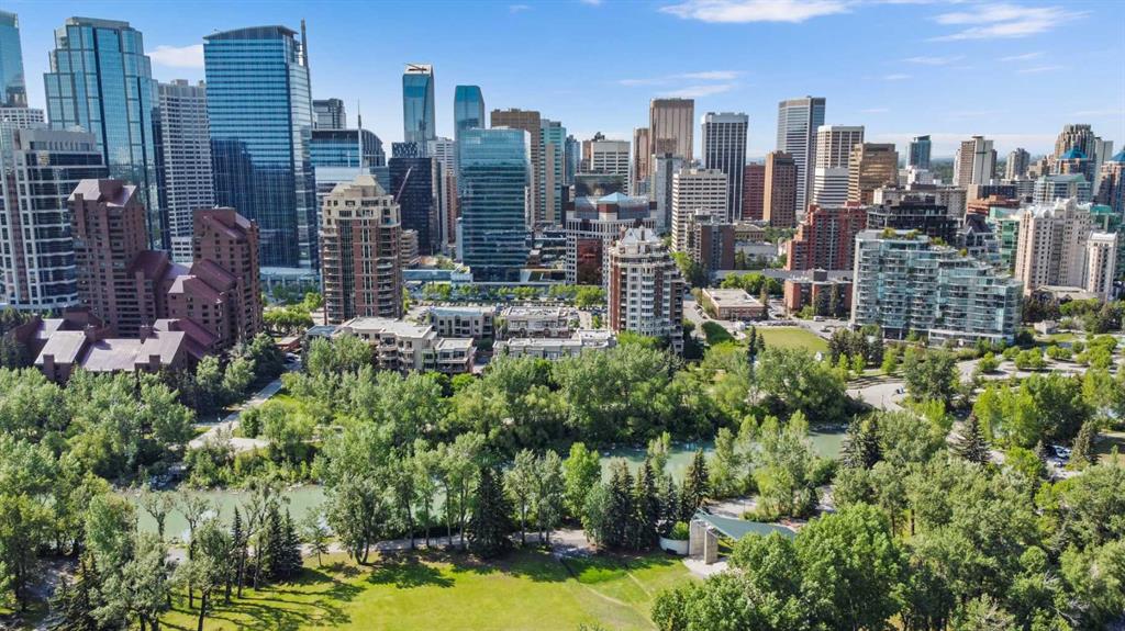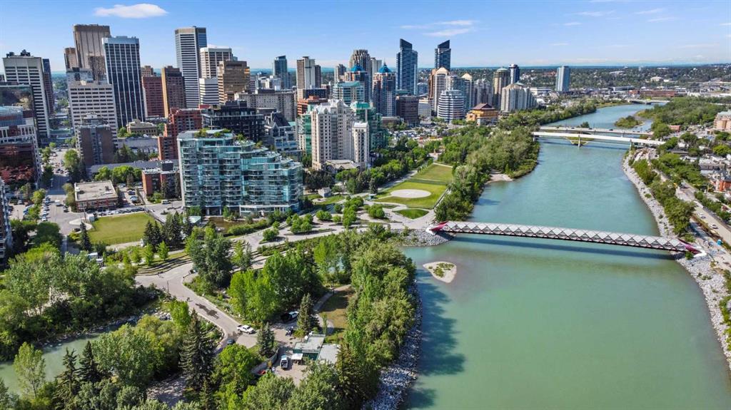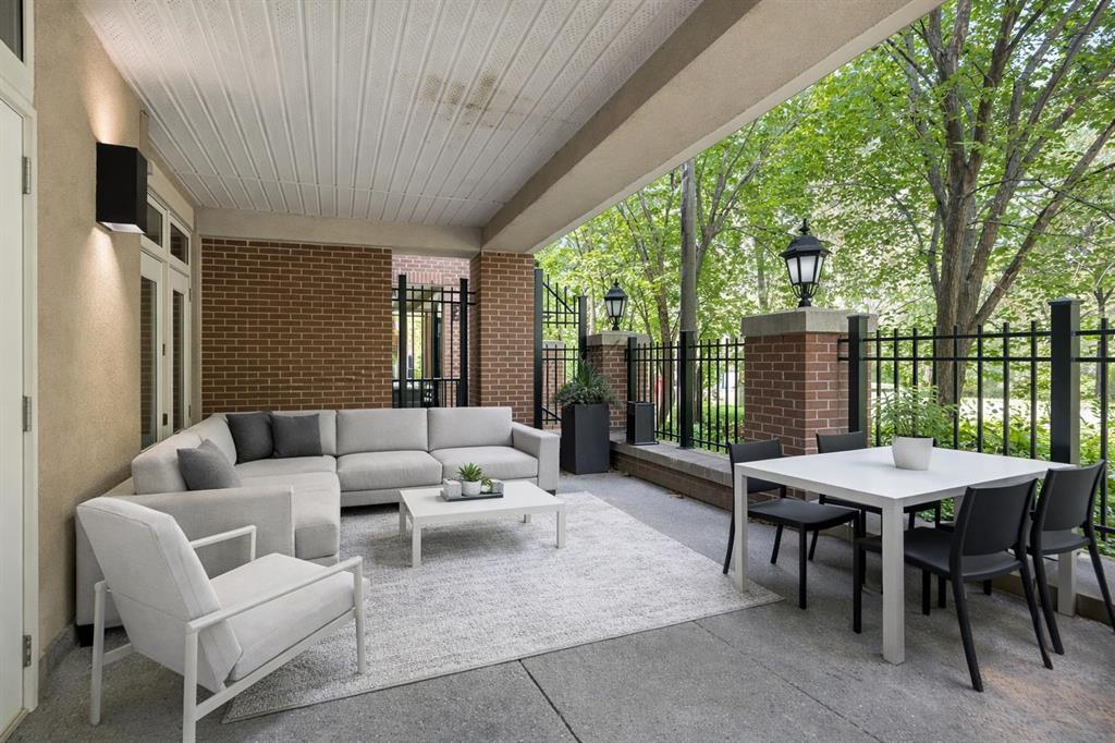 True Boutique Riverfront living in the heart of downtown. The Princeton offers luxury, space, and Location! This unique free standing complex shares only 7 homes. Estate quality finishing on this one of kind main level townhome. A unique unit with direct access to the Bow River and Prince’s Island park right from your patio. No elevators or stairs. Boasting an excellent floor plan with 1330 square feet of well designed living space. Granite counters, stainless steel appliances, tile flooring and spacious principal rooms flooded with light and incredible views of the park. The Gourmet kitchen opens up to the large living area, featuring a fireplace, and French doors to a huge private terrace overlooking the river. The master suite is spacious and comfortable. Surrounded by windows, a walk in close, and of course a large ensuite with soaker tub, separate glass / tile shower and dual sink vanities. The second bedroom has lovely park views as it spreads the full north east corner of the suite. The second full bath is just off the hall with easy access for the bedroom and guest powder room. This unit boasts two large patios. The second one is located on the NE corner of the building, offering lots of light and privacy, yet surrounded by mature foliage. This is the perfect spot for the bbq, and extends the space off the kitchen for an al- fresco morning coffee patio. This is one of the most unique units in the Boutique 670 building at the Princeton. Offering you upscale living in a prime location, with townhome access. Just imagine your backyard as a private park overlooking the river. A wonderful four seasons access to a fully treed, lush lawn space, perfect for family bbq’s and warm days playing with your dog. This unit features two side by side parking stalls and one large titled storage lockers. A great value, unique and truly iconic, immaculate and ready to move-in for the summer. Some pictures and furniture options for illustration purposes.