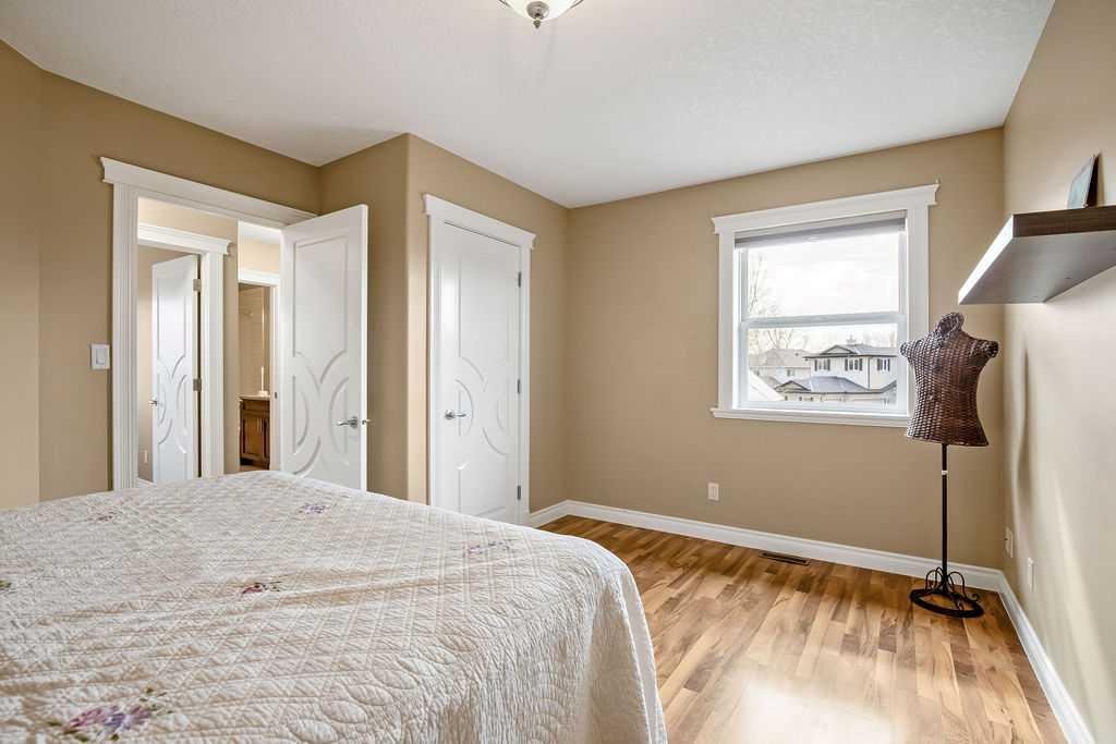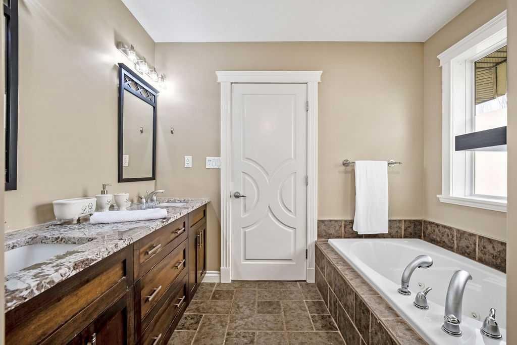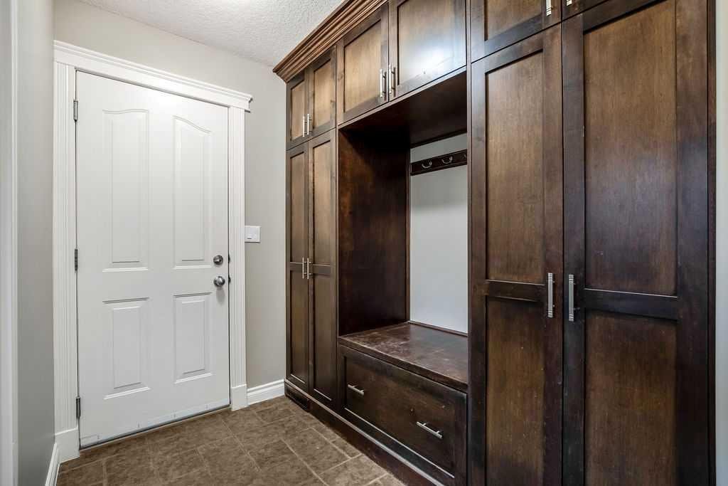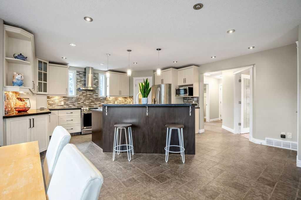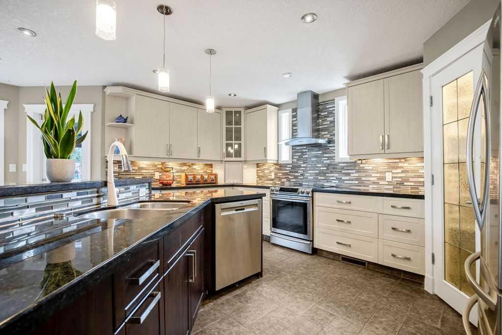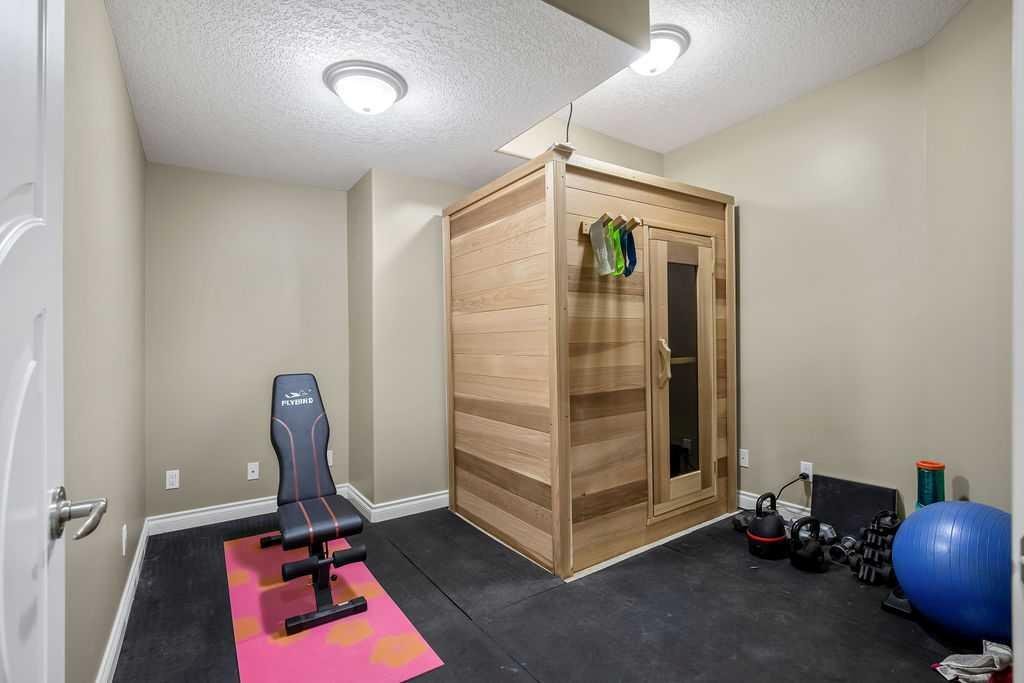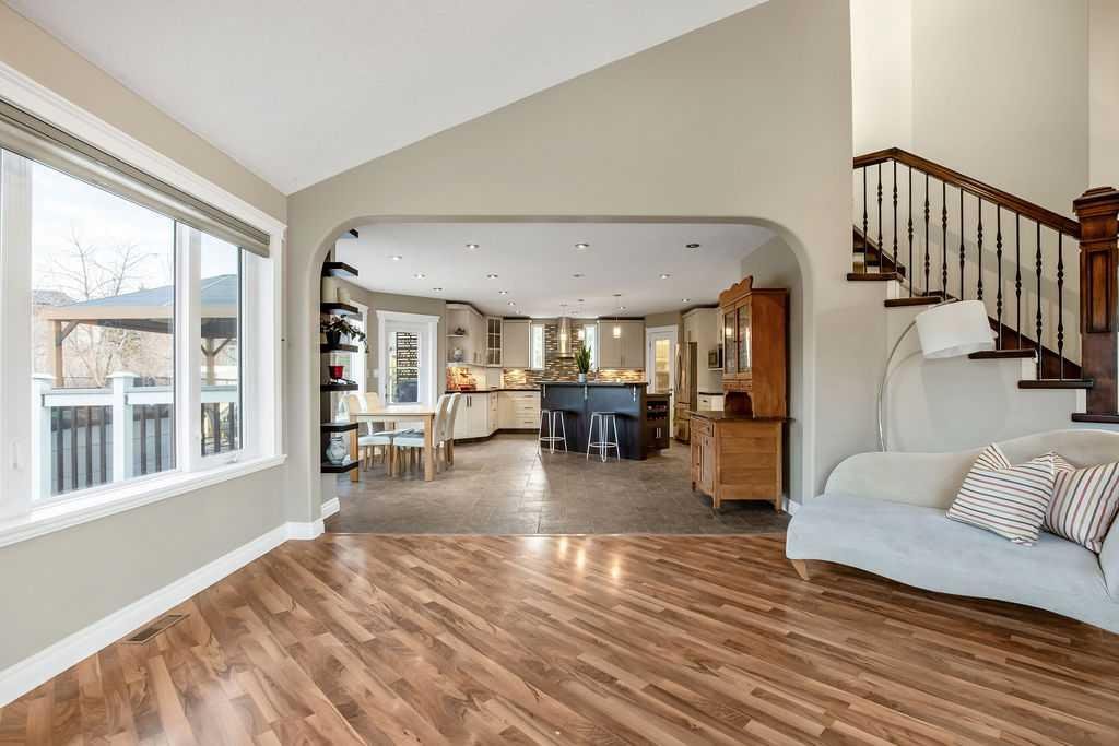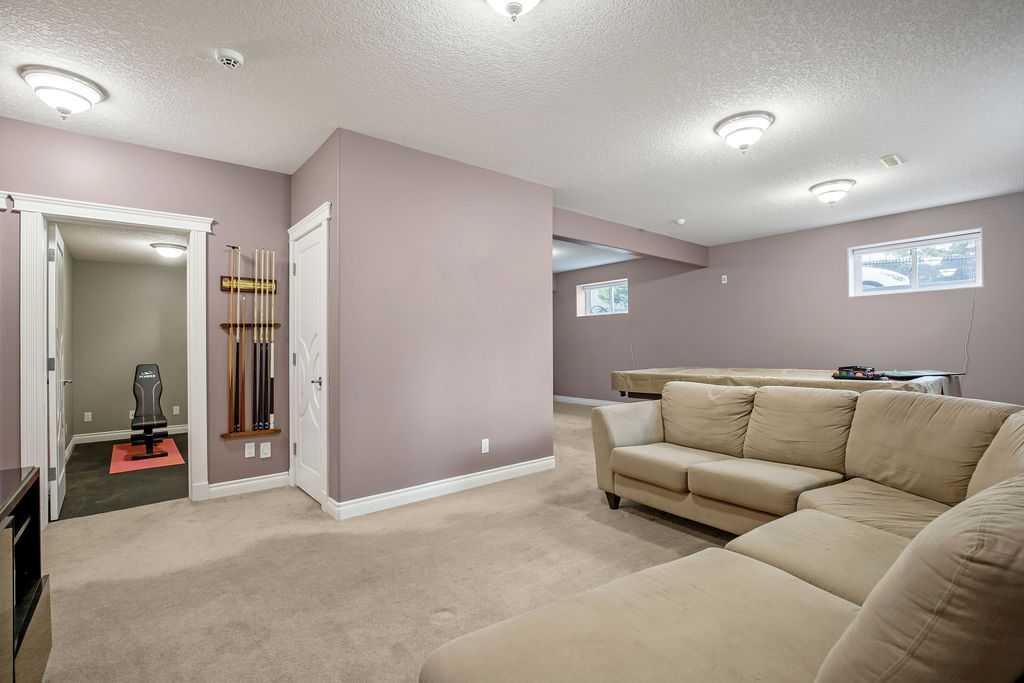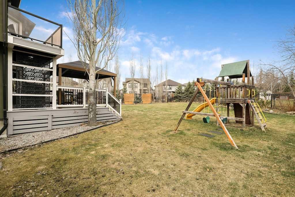 Experience refined country estate living in this exceptional custom-built home, ideally situated in the prestigious Air Ranch community. Set on an expansive 0.41-acre Pie lot—one of the largest in Okotoks—this remarkable property offers a rare blend of space, privacy, and natural beauty. The west-facing backyard is truly spectacular, surrounded by mature trees that create a private, park-like oasis—perfect for elegant outdoor entertaining or quiet evenings enjoying breathtaking sunsets. Positioned on a peaceful cul-de-sac, the property offers endless lifestyle possibilities, with ample space for RV parking, recreation, gardening, or seasonal outdoor features. It’s a setting that seamlessly balances tranquility with everyday convenience. Inside, the home showcases over 3,300 sq. ft. of thoughtfully designed and fully developed living space. The main level impresses with soaring vaulted ceilings and an open-concept layout, anchored by a warm and inviting gas fireplace. The beautifully renovated kitchen is both stylish and functional, featuring rich cabinetry with under-cabinet lighting, granite countertops, generous storage, and a well-appointed corner pantry. The upper level offers three spacious bedrooms along with a versatile bonus room—ideal as a private office, or elegant flex space. The primary suite is a true retreat, complete with double-door entry, a private west-facing balcony, a custom walk-in closet, and a luxurious 5-piece ensuite designed for relaxation. The fully finished lower level continues the home’s elevated feel with 9’ ceilings and the added comfort and convenience of motorized blinds. Recent system upgrades enhance both comfort and efficiency, including new furnaces, humidifiers, new central air conditioning units, hot water on demand, and solar panels—delivering modern performance with long-term energy savings. Additional features include a heated oversized garage, a premium ICF foundation, underground sprinklers, upgraded window coverings, rear window film, a water softener, and a built-in vacuum system. An exceptional offering, this home includes a hot tub, sauna, pool table, two sheds, and a children’s play structure—creating a true turnkey lifestyle opportunity. A distinguished property offering space, privacy, and elevated living in one of Okotoks’ most desirable communities.