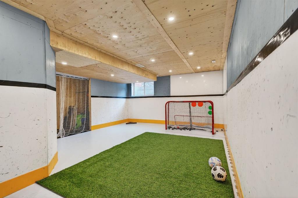 The partially finished basement includes a gym area, recreation space, finished stairs, pot lighting, and a bathroom rough-in. Additional highlights include an epoxy-coated garage floor, updated lighting, two backyard storage sheds, Air Conditioning to keep you cool in the Summer months, walnut-stained deck with gas BBQ hookup, and permanent Luminex exterior lighting.