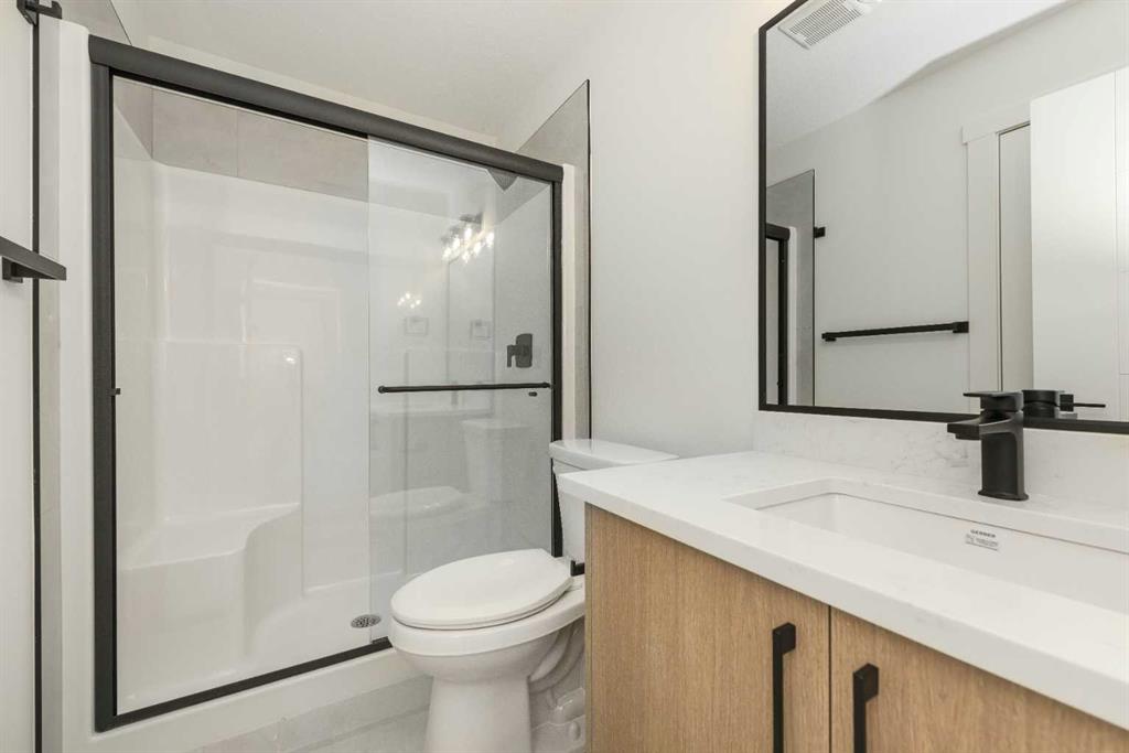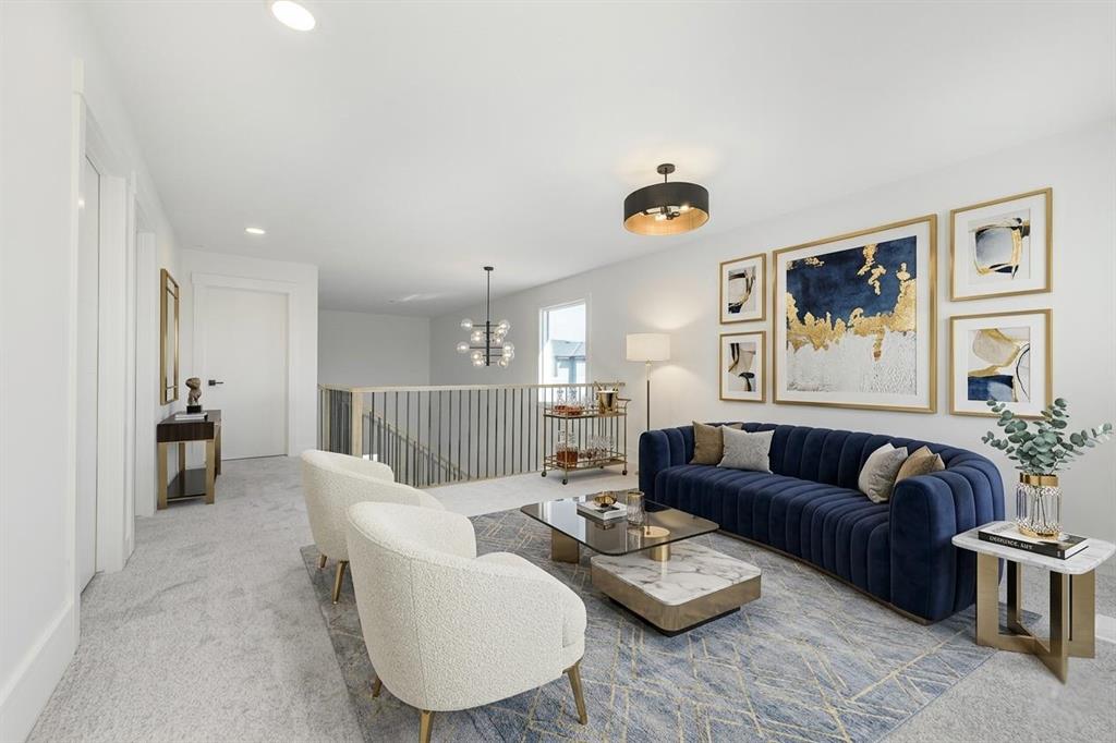 Welcome to this beautifully designed home located in the vibrant and growing community of Waterford, Chestermere. Featuring an open floorplan and elegant finishes throughout, this home offers the perfect blend of comfort, functionality, and style. The main floor boasts a bedroom and full 3-piece bathroom, ideal for guests or multi-generational living. The spacious great room features a striking open-to-above ceiling, flooding the space with natural light and creating a bright, airy atmosphere. From the bonus room upstairs, enjoy views down to the main living area—perfect for modern family living. The main kitchen is complemented by a generously sized spice kitchen, offering convenience and versatility for everyday cooking and entertaining. Upstairs, you’ll find four well-appointed bedrooms, including a primary master suite with a luxurious ensuite and walk-in closet, as well as a secondary master bedroom with its own private ensuite. A spacious bonus room and upstairs laundry complete the upper level, offering practical living spaces for the whole family. The unfinished basement includes a separate side entrance, providing a fantastic opportunity to develop a legal suite or custom basement to suit your needs.