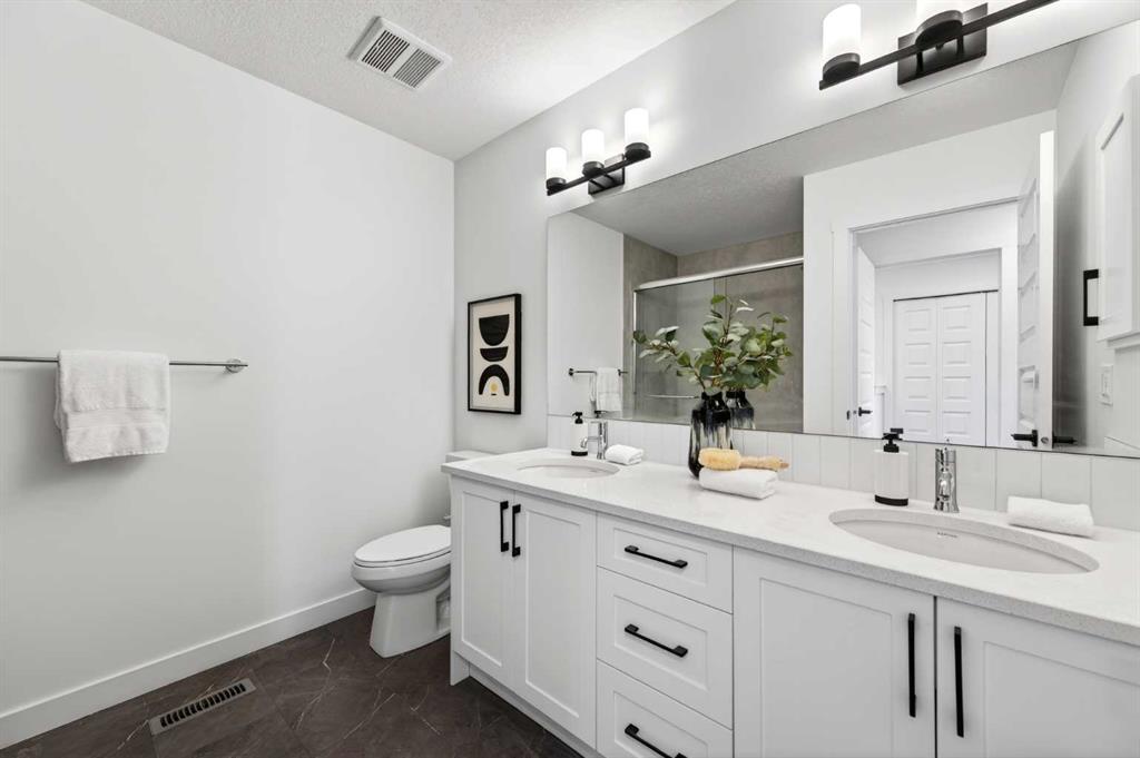 Welcome to 1055 Bayview Crescent, a beautifully designed street-side luxury townhome with NO CONDO FEES! This interior Jasper townhome features an attached double garage, a rooftop patio, and low-maintenance living. The tastefully designed home offers over 1400 sq ft. of above-grade living space plus an unfinished basement with 9′ ceilings, ready for your design ideas. On the main floor, you will find soaring ceilings in the open-concept living space and large windows that let natural light flow through. The chef-inspired kitchen offers beautiful cabinetry and stone countertops and is well-equipped with stainless steel appliances. The kitchen is open to the dining and living room, perfect for entertaining family and friends. Complimenting the main floor is a convenient half bath, storage and entry from the attached garage. Venturing upstairs, you will find a spacious primary retreat with a spa-like ensuite, a spacious shower, and a generous walk-in closet. Two additional bedrooms, a full bath, a 4-piece bath and laundry complete the upper level. Outside, enjoy time on your upper south-facing rooftop patio, which is situated above the garage. Bayview is a beautiful community with parks, benches and pathways that meander throughout the community and along the canals. Kids and adults alike will enjoy the outdoor basketball nets, gym, amphitheatre, and tennis courts, which convert into a skating rink in the winter. Come and see all the amenities the community offers for yourself! *RMS has been applied to the construction drawings provided by the builder. Taxes to be assessed.