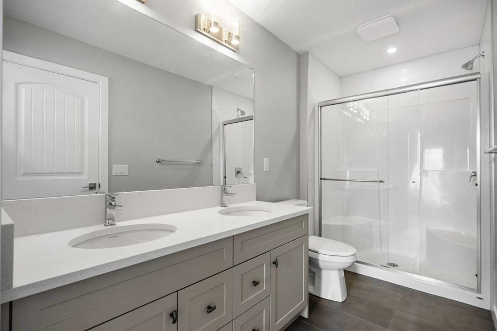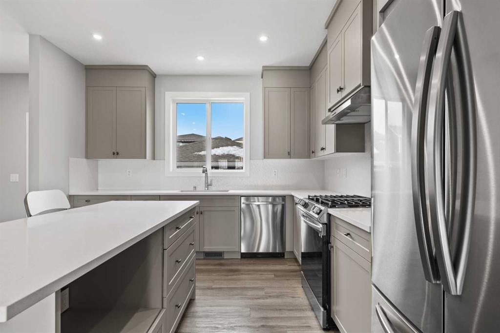 Modern elegance meets elevated living in this brand new, impeccably upgraded 4-bedroom, 3.5-bath detached residence by Broadview Homes, ideally situated in the vibrant and fast-growing community of Alpine Park, showcasing the sought-after Newport III model with 2,392 sq ft of thoughtfully curated living space that seamlessly blends style, comfort, and functionality; from the moment you arrive, you’ll appreciate the attention to detail, including a newly completed backyard oasis featuring a brand new deck and professional landscaping, perfect for outdoor entertaining or quiet relaxation, while the double detached garage is equally impressive with a roughed-in gas line and a 30A 240V subpanel ready for EV charging; inside, the sun-drenched, south-facing main floor welcomes you with soaring 9’ ceilings and upgraded luxury vinyl plank flooring throughout, anchored by a dramatic floor-to-ceiling tiled feature wall with a sleek fireplace that creates a refined yet inviting atmosphere, while the designer kitchen is a true showpiece featuring stainless steel appliances including a gas stove, elegant shaker cabinetry, and a stunning quartz island with seating, complemented by a generous dining area and a stylish 2-piece powder room; upstairs, the same high-end flooring continues, leading to a spacious bonus room ideal for movie nights or family gatherings, a thoughtfully designed desk nook perfect for working from home or study, and a serene primary retreat with a large walk-in closet and a beautifully appointed 4-piece ensuite with dual vanities and a glass-enclosed shower, while two additional bedrooms share an upgraded 3-piece bathroom with a 5-foot stand-up glass shower and a convenient upper-level laundry completes the space; the fully developed basement expands your living area with a large recreation room, a fourth bedroom, a full 4-piece bathroom, and an upgraded 200-amp electrical panel, offering both versatility and peace of mind; perfectly positioned in southwest Calgary, Alpine Park provides effortless access to major routes such as Stoney Trail and Macleod Trail, with close proximity to premier shopping and dining at The Shops at Buffalo Run and the established amenities of Westhills Towne Centre and Signal Hill Centre, making this a rare opportunity to own a turnkey, designer home in one of Calgary’s most exciting new communities.
