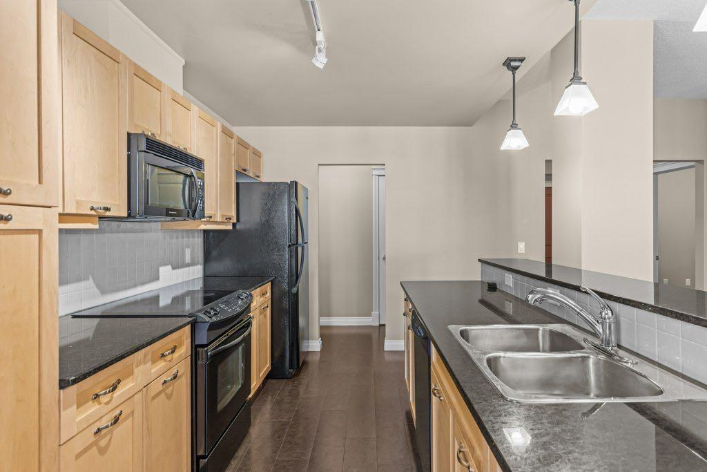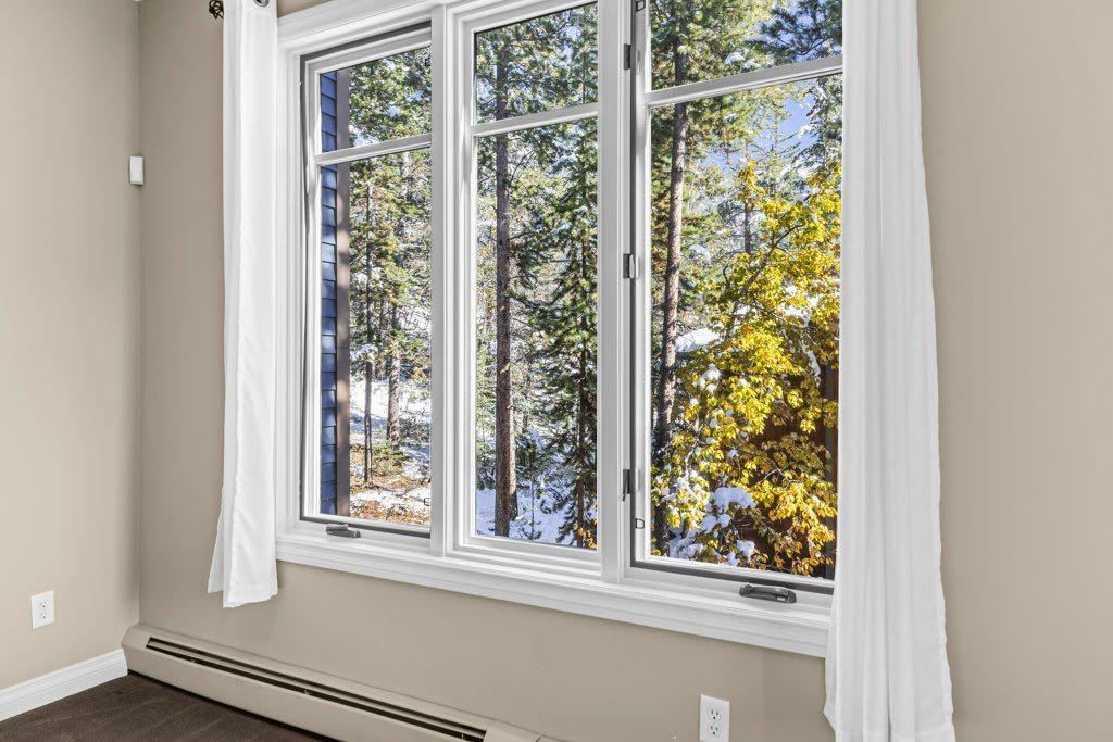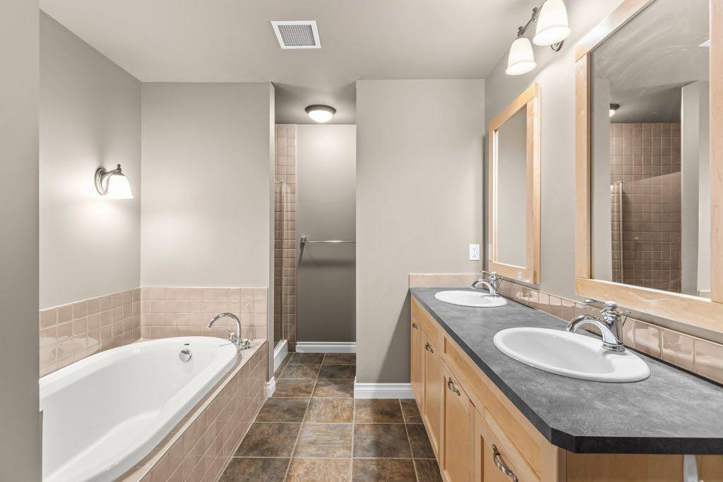 Welcome to your perfect mountain retreat! This spacious 2-bed + den condo offers bright, open-concept, one-level living with south-east exposure and abundant natural light. Enjoy cozy evenings by the natural stone gas FP, or sip your morning coffee on the large east-facing deck while taking in tranquil forest and mountain views. The spacious primary suite is a true sanctuary, featuring a luxurious 5-piece ensuite with dual vanities, a soaker tub, and a separate shower. Your guests will appreciate the privacy of the second bed, located on the opposite side of the unit, with a 4-piece bath nearby. The den is ideal for a home office or additional sleeping area. Additional features include in-suite storage, 2 titled parking stalls, and extra storage in the underground parkade—perfect for all your mountain gear. Built with concrete construction and 9-foot ceilings, this quiet condo combines comfort, quality, and stunning natural surroundings.