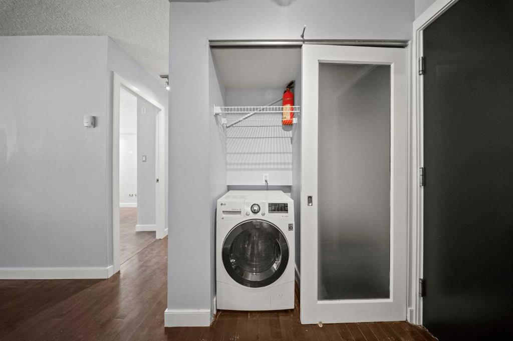 The spacious bedroom offers a walk-in closet, while the updated 4-piece bathroom carries the same clean, modern aesthetic. You’ll also appreciate the convenience of in-suite laundry, with an additional shared laundry room available in the building.