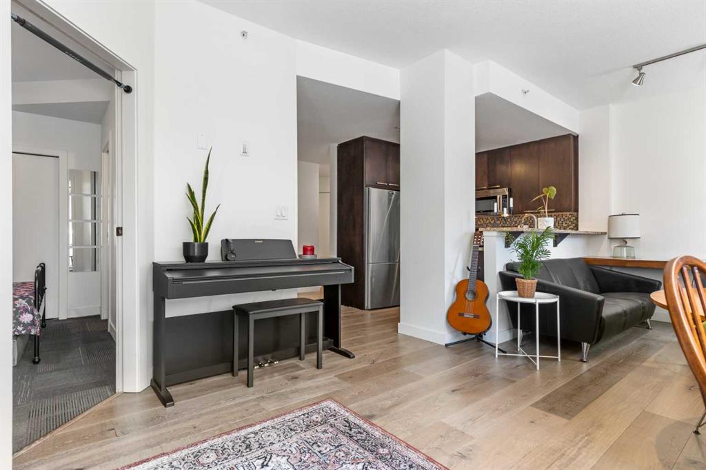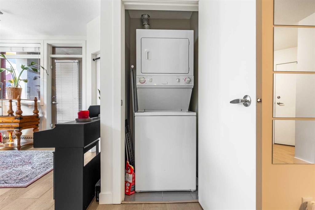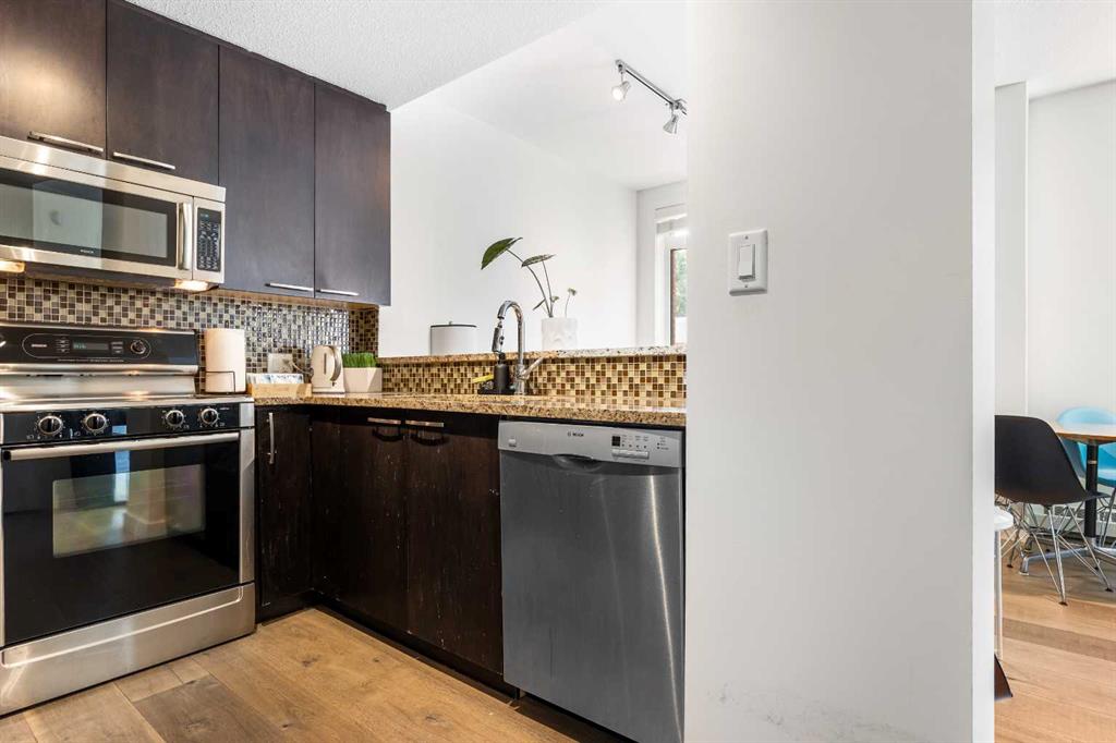 Discover the perfect blend of style, convenience, and investment potential in this chic condo located in the heart of Mission—a rare find in a concrete 6-storey building! Whether you’re a first-time buyer looking for your dream home or an investor seeking a prime rental opportunity, this unit offers exceptional value in one of Calgary’s most vibrant communities. Step into a bright and spacious living area featuring hardwood floors and large south-facing windows that fill the space with natural light. The stylish kitchen is a chef’s delight, with granite countertops, a sleek tile backsplash, matching stainless steel appliances, and a convenient breakfast bar—ideal for casual dining or entertaining friends. The open-concept living and dining areas provide plenty of space for relaxing or hosting, and you’ll love stepping out onto the patio, perfect for outdoor gatherings or unwinding after a long day. The bedroom offers a generous full-width closet and direct access to a modern en-suite, complete with granite counters & a tiled shower. With in-suite laundry, a titled parking stall in the heated parkade, a storage locker, and access to a stunning rooftop patio with city views, this condo has everything you need for comfortable urban living. Plus, the building is meticulously maintained with exceptional management, ensuring your investment is well-protected. Located in the sought-after Mission neighborhood, you’ll be within walking distance of trendy restaurants, cozy cafes, parks, and transit, with easy access to major routes—making it a fantastic location for both living and renting. Don’t miss out on this incredible opportunity to own in one of Calgary’s best communities—whether you’re starting your homeownership journey or expanding your investment portfolio, this condo is a smart choice!