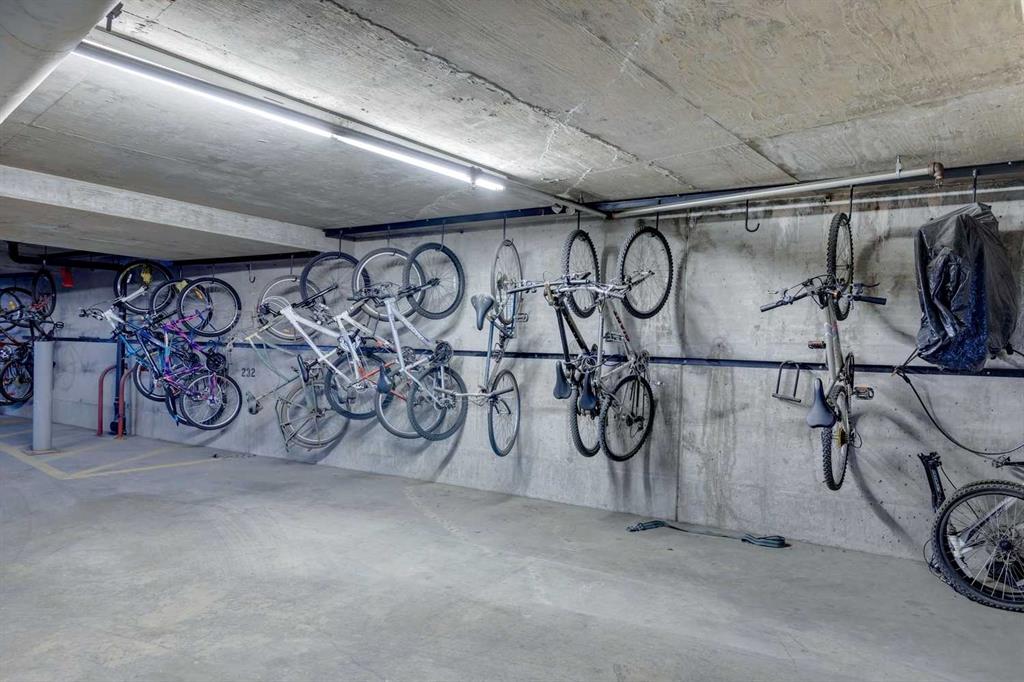 French doors lead to a private primary retreat with views of your patio and surrounding green space. The layout is practical and smart, offering a 4-piece bathroom with cheater ensuite access, in-suite laundry, titled underground parking, and a separate storage locker—everything in its place. This unit also offers cool comfort in the summer with newly installed A/C.