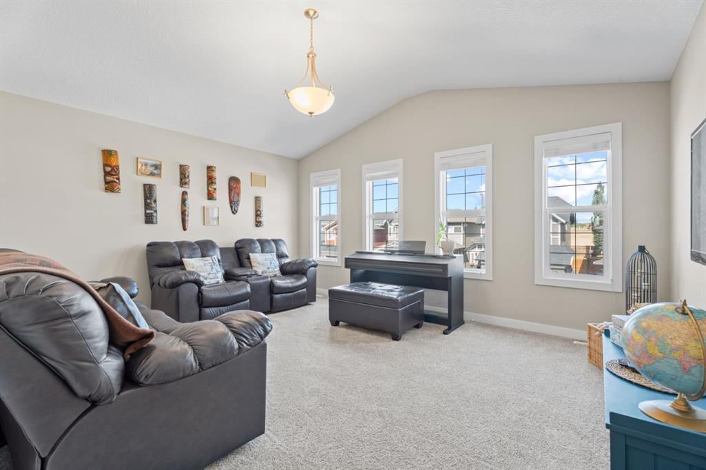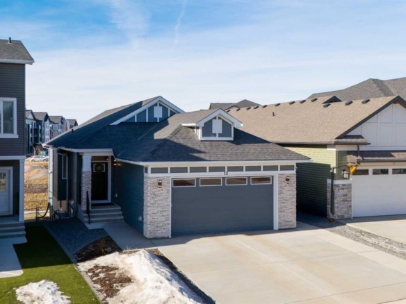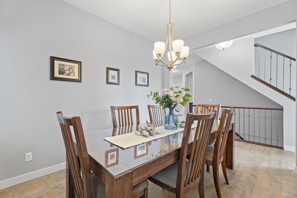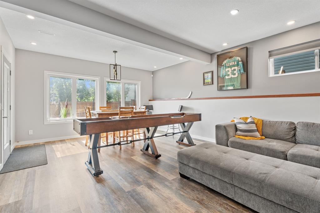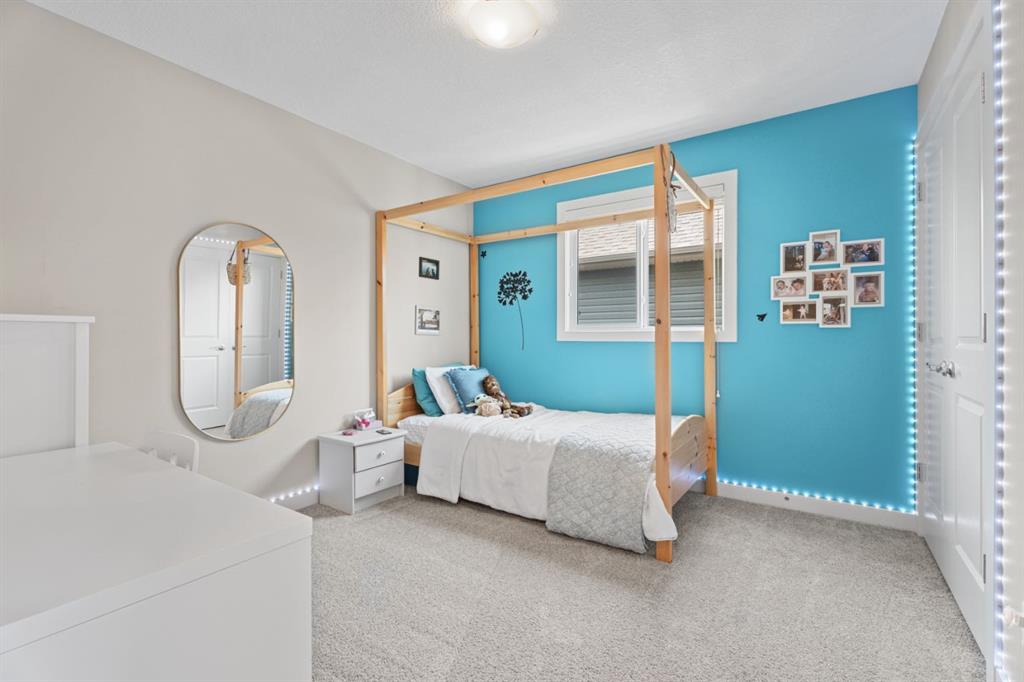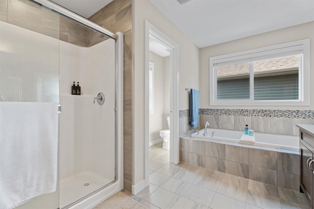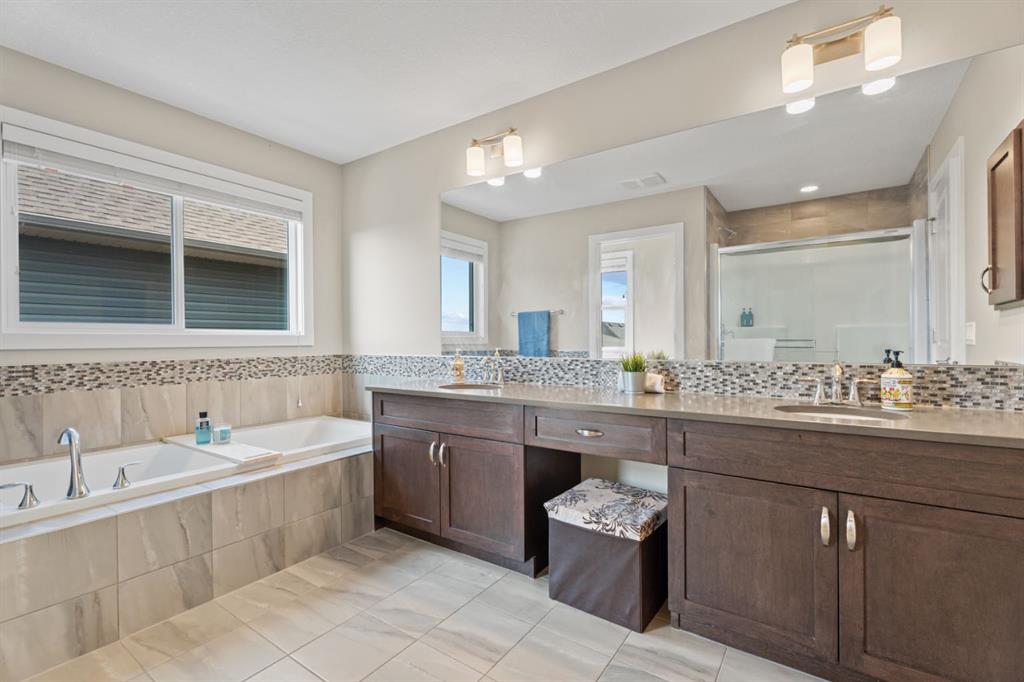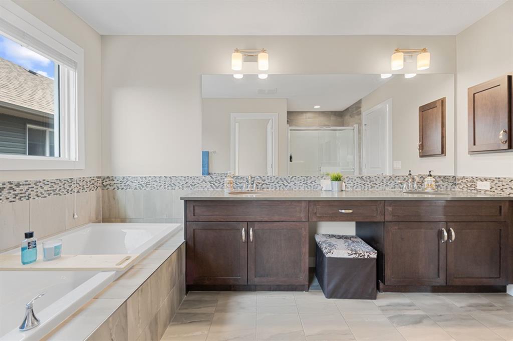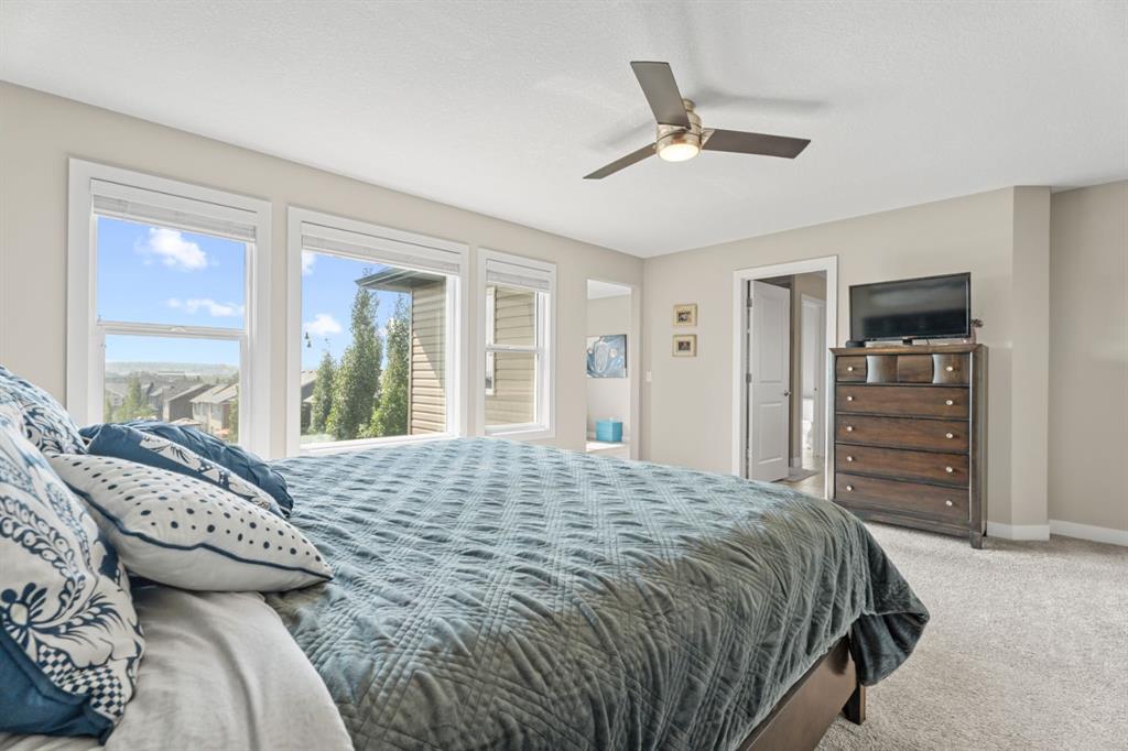 The family friendly community of Mountainview is a dream featuring over 35 acres of environmental reserve, including a lively creek, naturalized wet pond and pathway system along the ridge. This home truly has it all! With over 4,000 sq. ft. of beautifully developed living space, a walkout basement, mountain views, and thoughtful upgrades at every turn, this Sterling built gem delivers the full package. Add in an oversized, heated double garage, executive level finishes, and a layout that’s as functional as it is fabulous-check, check, check! The tiled foyer with its built in bench offers a warm welcome, while the front office with a double sided gas fireplace sets the stage for style and comfort. A formal dining room stands ready for your most memorable gatherings. And then there’s the kitchen… the true showstopper. A massive quartz island anchors the space, complemented by a gas cooktop with feature hood, built-in oven and microwave, a brand new upgraded fridge, wine fridge, pantry, and oversized windows framing those sweeping Rocky Mountain views. The bright breakfast nook opens onto your sunny south facing deck with west mountain views—where sunshine and scenery meet. The adjoining living room, centered around the cozy fireplace, is perfect for both family time and entertaining, with refinished hardwood floors and a seamless flow that’s an easy 10/10. Off the heated garage, the large mudroom provides ample storage, and even the main floor powder room is tastefully upgraded. Upstairs, the vaulted bonus room offers versatile living for movie nights, a playroom, or a quiet retreat. With four bedrooms on this level, everyone has their own space. The primary suite is a true haven, featuring oversized windows, a huge walk in closet, and a private den with its own balcony and more of those incredible views. Whether you use it as an office, nursery, yoga space, or reading nook, this bonus area is a dream. The ensuite impresses with dual sinks, a makeup station, a walk in shower, and a tiled soaker tub. The fully developed walkout basement continues to wow, complete with a full wet bar, large rec room, fifth bedroom, full bathroom, and access to the landscaped yard. Perfect for multi-generational living or guests. Imagine evenings under the covered patio, garden boxes in bloom, and maybe even a soak in the negotiable hot tub. Extras? This home is loaded with them: oversized heated garage, A/C (under contract), water softener, and year round trim lighting for curb appeal and effortless holiday sparkle. From top to bottom, this property blends luxury, comfort, size and family friendly design. Move in ready and perfectly poised to impress, this is mountain view magic you won’t want to miss. Be sure to check out the virtual tour!