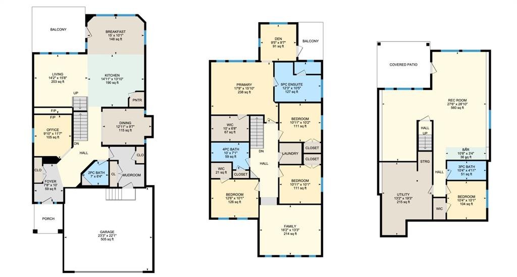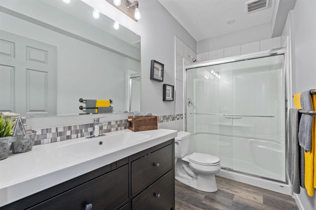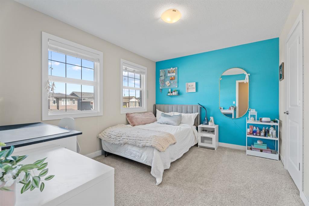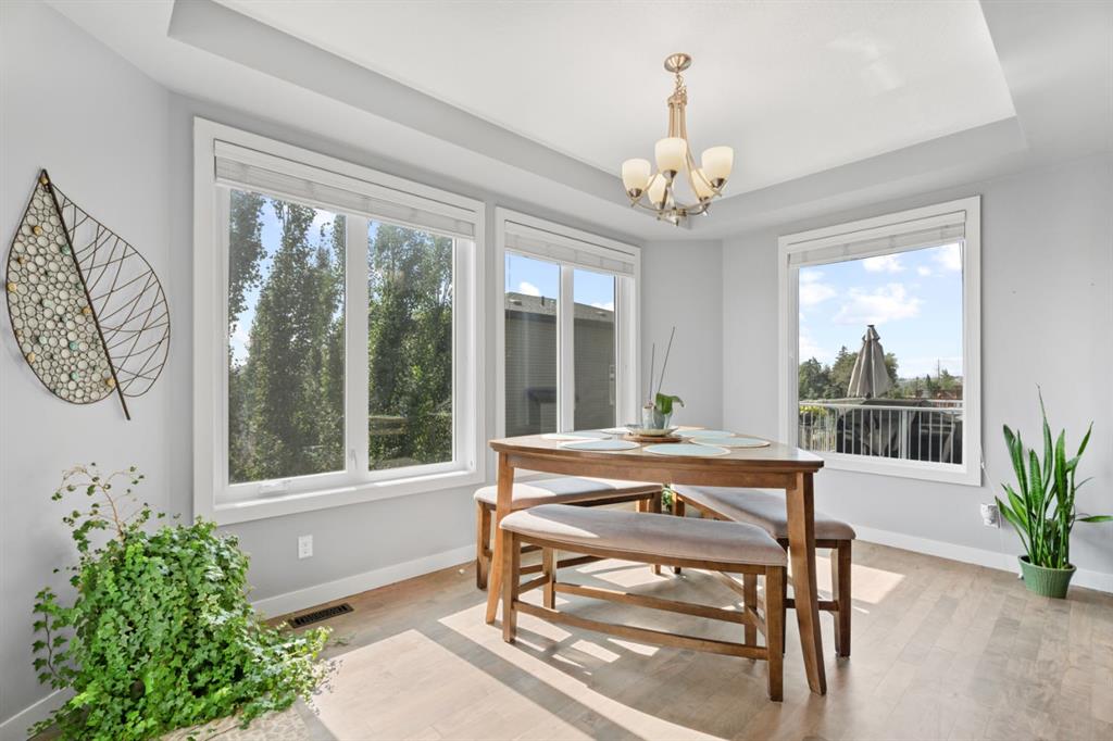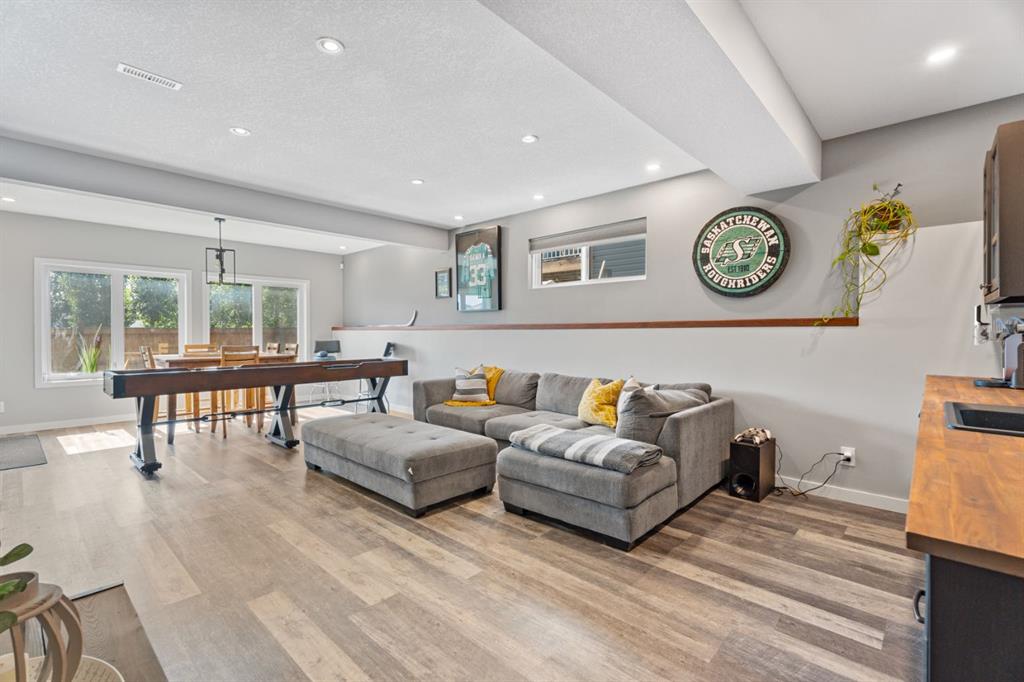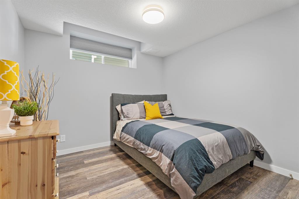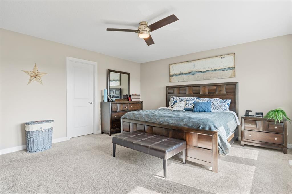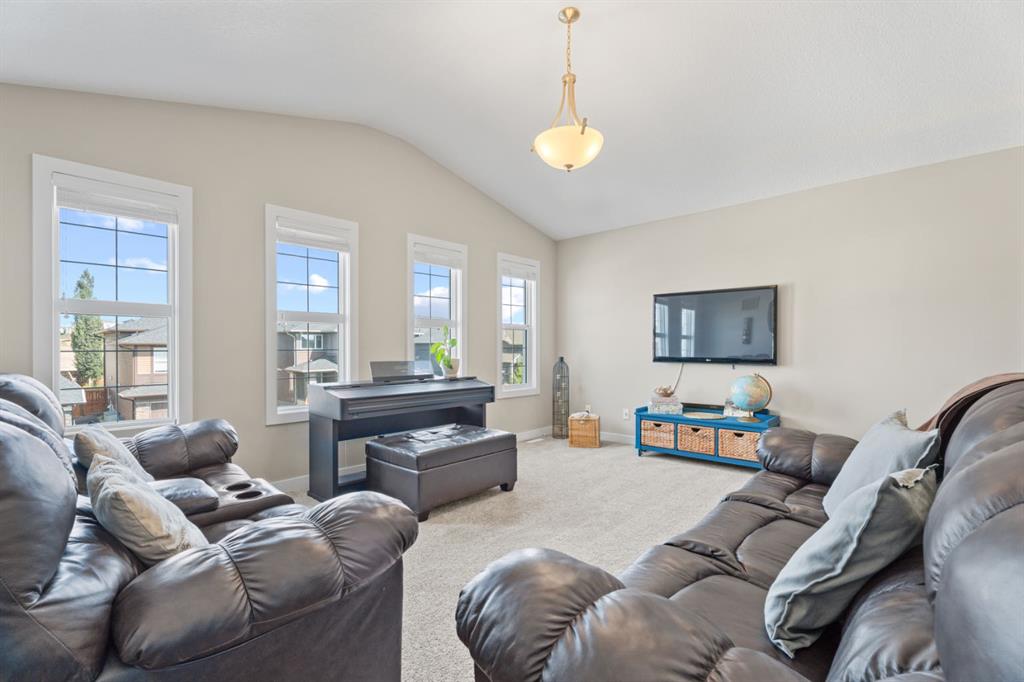 The family friendly community of Mountainview is a dream featuring over 35 acres of environmental reserve, including a lively creek, naturalized wet pond and pathway system along the ridge. This home truly has it all! With over 4,000 sq. ft. of beautifully developed living space, a walkout basement, mountain views, and thoughtful upgrades at every turn, this Sterling built gem delivers the full package. Add in an oversized, heated double garage, executive level finishes, and a layout that’s as functional as it is fabulous-check, check, check! The tiled foyer with its built in bench offers a warm welcome, while the front office with a double sided gas fireplace sets the stage for style and comfort. A formal dining room stands ready for your most memorable gatherings. And then there’s the kitchen… the true showstopper. A massive quartz island anchors the space, complemented by a gas cooktop with feature hood, built-in oven and microwave, a brand new upgraded fridge, wine fridge, pantry, and oversized windows framing those sweeping Rocky Mountain views. The bright breakfast nook opens onto your sunny south facing deck with west mountain views—where sunshine and scenery meet. The adjoining living room, centered around the cozy fireplace, is perfect for both family time and entertaining, with refinished hardwood floors and a seamless flow that’s an easy 10/10. Off the heated garage, the large mudroom provides ample storage, and even the main floor powder room is tastefully upgraded. Upstairs, the vaulted bonus room offers versatile living for movie nights, a playroom, or a quiet retreat. With four bedrooms on this level, everyone has their own space. The primary suite is a true haven, featuring oversized windows, a huge walk in closet, and a private den with its own balcony and more of those incredible views. Whether you use it as an office, nursery, yoga space, or reading nook, this bonus area is a dream. The ensuite impresses with dual sinks, a makeup station, a walk in shower, and a tiled soaker tub. The fully developed walkout basement continues to wow, complete with a full wet bar, large rec room, fifth bedroom, full bathroom, and access to the landscaped yard. Perfect for multi-generational living or guests. Imagine evenings under the covered patio, garden boxes in bloom, and maybe even a soak in the negotiable hot tub. Extras? This home is loaded with them: oversized heated garage, A/C (under contract), water softener, and year round trim lighting for curb appeal and effortless holiday sparkle. From top to bottom, this property blends luxury, comfort, size and family friendly design. Move in ready and perfectly poised to impress, this is mountain view magic you won’t want to miss. Be sure to check out the virtual tour!