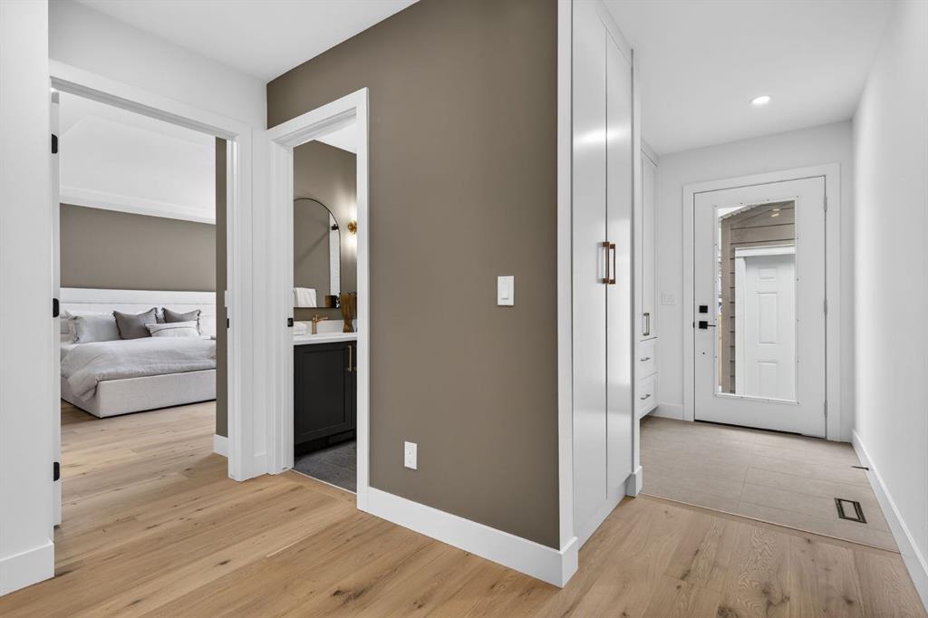 The fully developed basement adds incredible versatility with a spacious living area centered around a sleek linear electric fireplace, a stylish wet bar, and a large recreation space perfect for a home theatre, gym, or games area. Two additional bedrooms and two full bathrooms provide excellent space for family or guests. With a separate side entrance, the lower level also offers potential for a private living area that could be used as a mortgage helper or multi-generational suite. The basement also includes washer and dryer rough-ins and a central vacuum rough-in for added convenience.