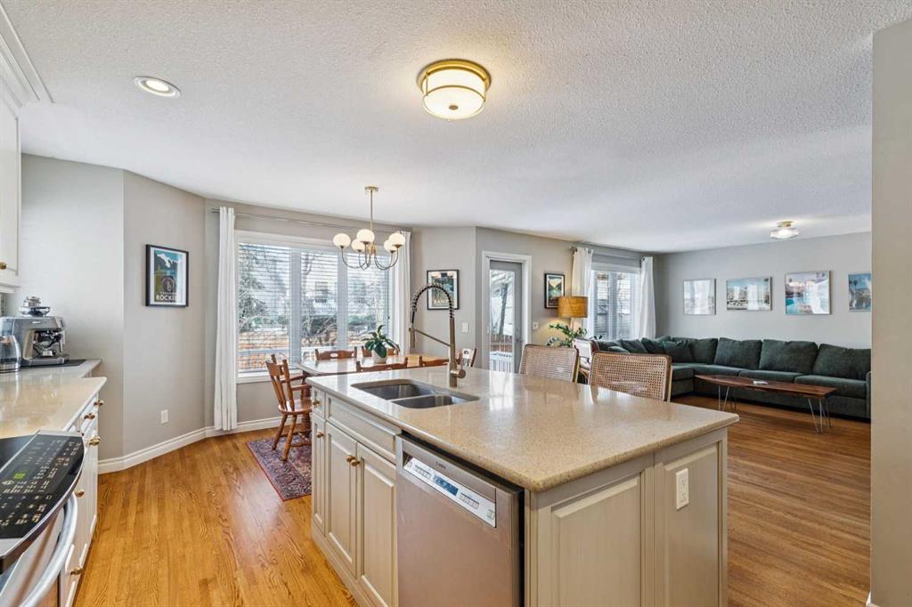 Impeccably designed both inside & out with the finest attention to detail, this renovated home is spectacular! Located on a Southwest back yard on a pie lot in the heart of Sheep River Ridge. You are welcomed into the home over the covered front porch. The main level offers an open floor plan, office / flex room with a gas fireplace off the front of the house. Spotless oak hardwood floors flow throughout the entire main floor through the living room and into the renovated kitchen that boasts stainless steel appliances, floor to ceiling cabinetry, quartz countertops, coffee bar, breakfast nook & central island which is a must for entertaining. The South facing door off the kitchen perfectly connects indoor/outdoor entertaining spaces regardless of rain or shine. Upstairs you’ll find the laundry room and a primary retreat like no other featuring an intimate bedroom with bright windows luxurious ensuite with 10 mm glass in the tiled shower, a corner soaker tub, quartz countertops & a walk-in closet that will be the envy of all your friends. Two additional upstairs bedrooms have their own 4-piece bathroom. The lower level consists of a recently developed open rec room with knockdown ceilings, pot lights and 4 egress windows. The double attached garage is fully finished with extra storage shelves & workbench. The south facing composite deck has exterior gas outlets overlooking large mature trees and a fenced off dog run. All of this and more makes this the best house for you to call home.