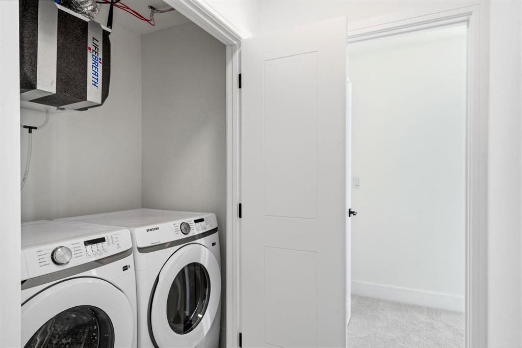 Step out onto your private balcony, equipped with a BBQ gas line and rough-in for AC designed for year-round outdoor enjoyment whether you’re hosting or simply unwinding after a long day. Upstairs, the primary bedroom retreat is a true sanctuary, featuring a stunning ensuite with double vanities and the same refined quartz finishes found throughout the home. Two additional bedrooms offer exceptional versatility, with the centre bedroom boasting its own private balcony a rare and refreshing bonus. Convenient upper-floor laundry rounds out the upper level for effortless daily living.