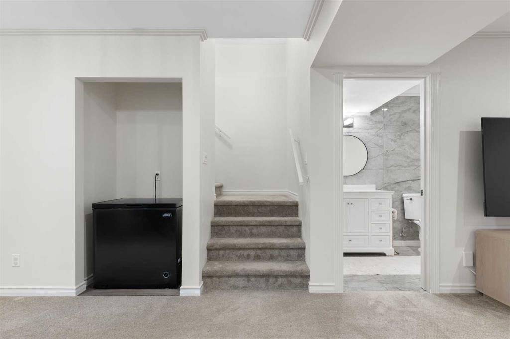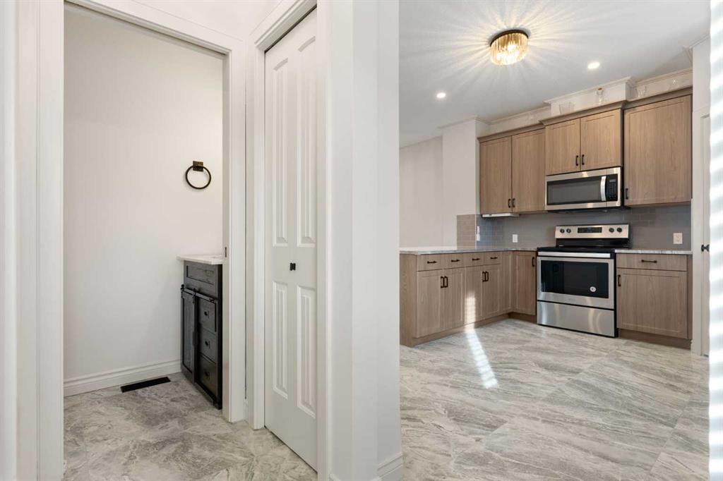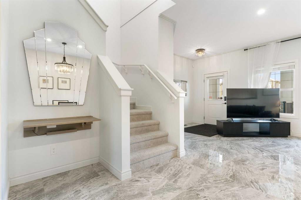 This 4 bedroom 3.5 bath home has over 2000 sq ft of developed living space that has been well cared for and recently updated with luxury porcelain tile on the main floor, new carpets upstairs with top of the line underlayment, and the entire home has been recently painted. The main level is open and bright with extra recessed lighting added and a rear kitchen with quartz countertops, a corner pantry and an under mount sink looking out to the spacious backyard. Upstairs features the primary bedroom with 3 piece ensuite and walk in closet, two additional well-sized bedrooms, a full 4-piece bathroom, and convenient upstairs laundry. Downstairs you’ll find a large recreation area, a beautiful 4-piece bathroom, and a spacious bedroom, making it perfect for extended family, visitors, or simply extra room to spread out. The home also has air conditioning to keep the whole family comfortable in the summer months.