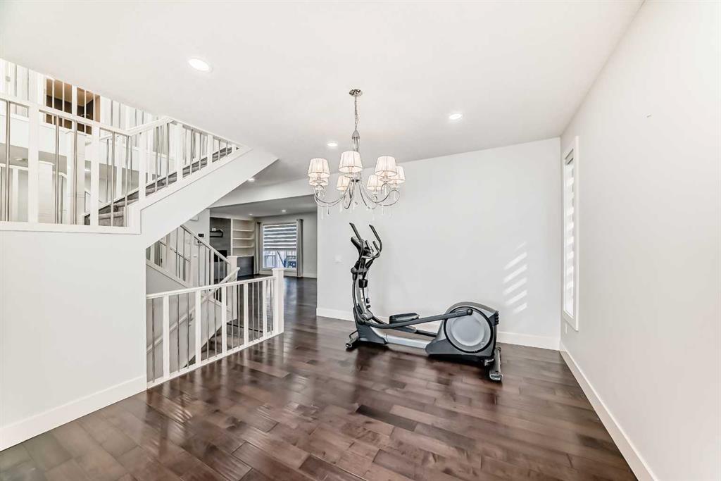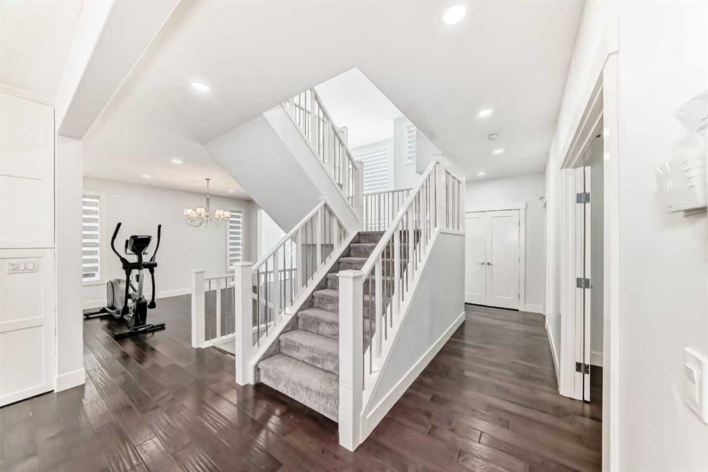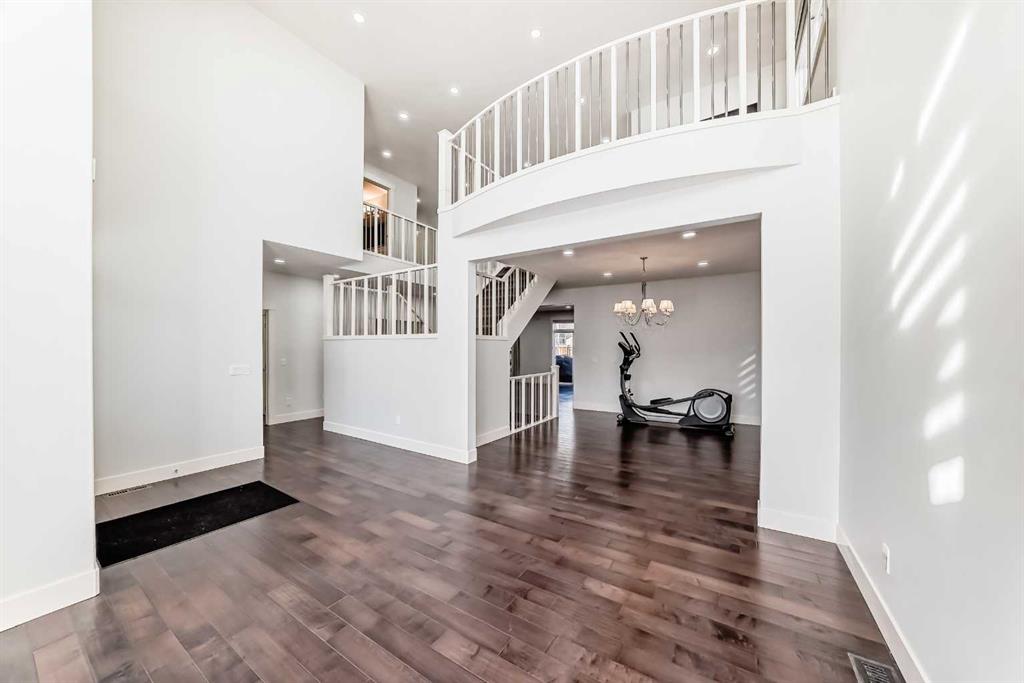 From the moment you step inside, you’ll be impressed by the open-concept floor plan, 9-foot ceilings, rich hardwood flooring, and a dramatic open-to-below feature with elegant wood and iron railings that create a bright and spacious feel throughout the home.