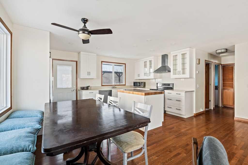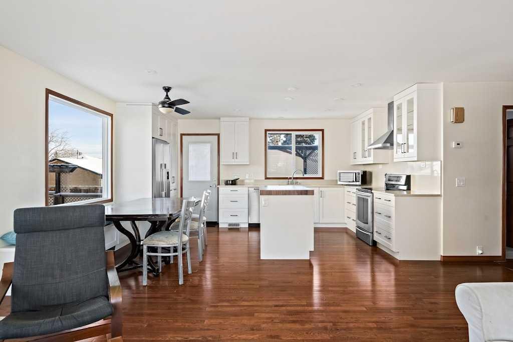 Welcome to life by the ridge in the upper part of Lynnwood, set on a quiet cul-de-sac in a family-friendly neighborhood. Situated on a huge pie-shaped lot, this home offers over 1,900 sq. ft. of living space and is just steps from city views and the beautiful river ridge. Over the years, the home has seen extensive and thoughtful upgrades including a complete professional kitchen renovation in 2015 which included removing the wall between the living room and kitchen, creating an open and functional layout. The fully updated kitchen features soft-close cabinetry throughout, touch-activated garbage and recycling drawers, and a custom built-in bench with storage drawers. The living room features large bright windows and a beautiful gas fireplace. The upstairs bathroom was fully renovated in 2020 and includes heated floors, walnut cabinetry, Italian tile, and a Duravit toilet with heated seat, built-in bidet function, heated water line, and heated fan, all controlled by remote and app. Completing the main floor you have both the spacious primary bedroom and one additional bedroom. The basement was renovated in 2023 and features three more additional bedrooms, another full bathroom and a generous utility, laundry, and storage area. Outside, the yard includes garden space and sheds with plenty of potential for a double garage. Ample parking available in the large driveway and cul-de-sac location. Most windows were replaced in 2016, with the exception of those in the office and utility room. A new, larger-than-average high-efficiency water heater was also installed at that time. The attic was completely spray foamed and sealed in 2024 for improved efficiency. Kids can walk to school, the community swimming pool, parks, and nearby shops, with public transit close by and quick access to major roads and downtown.
