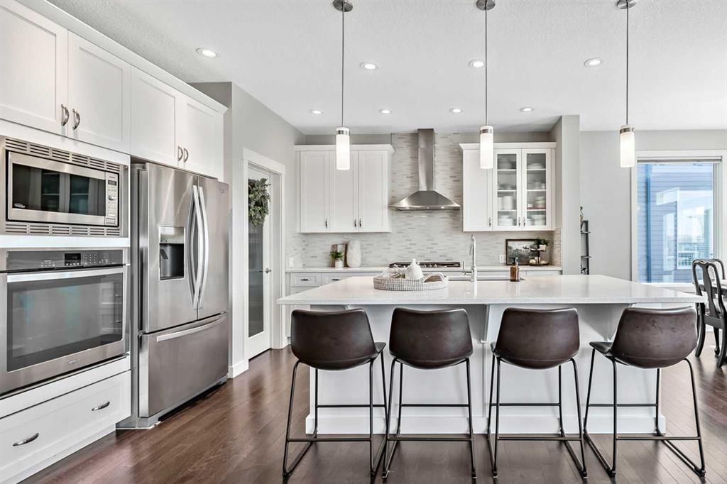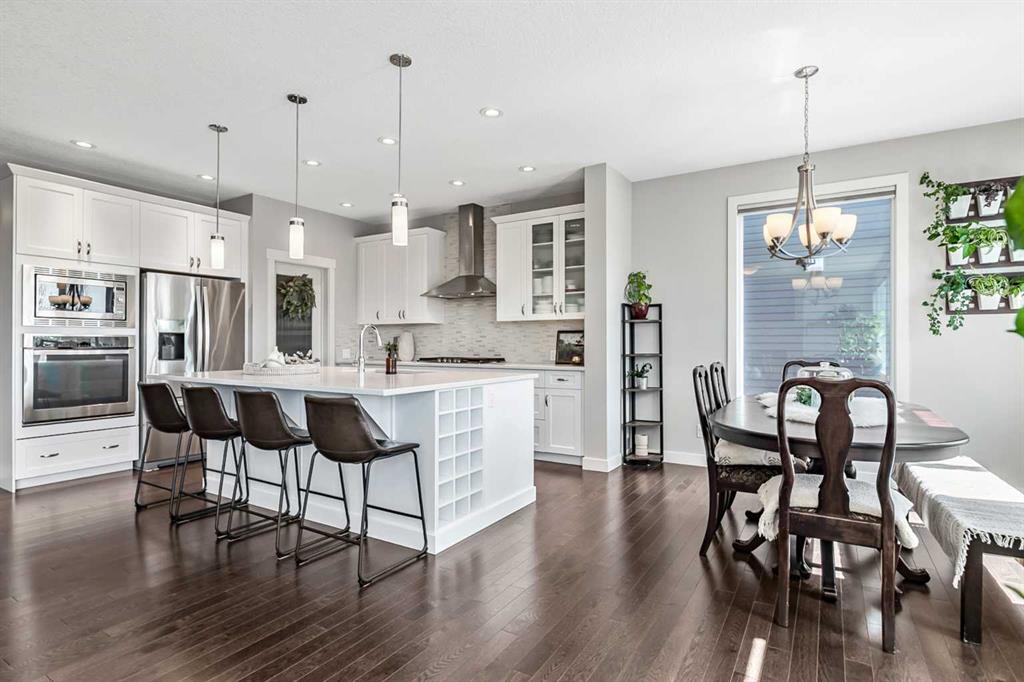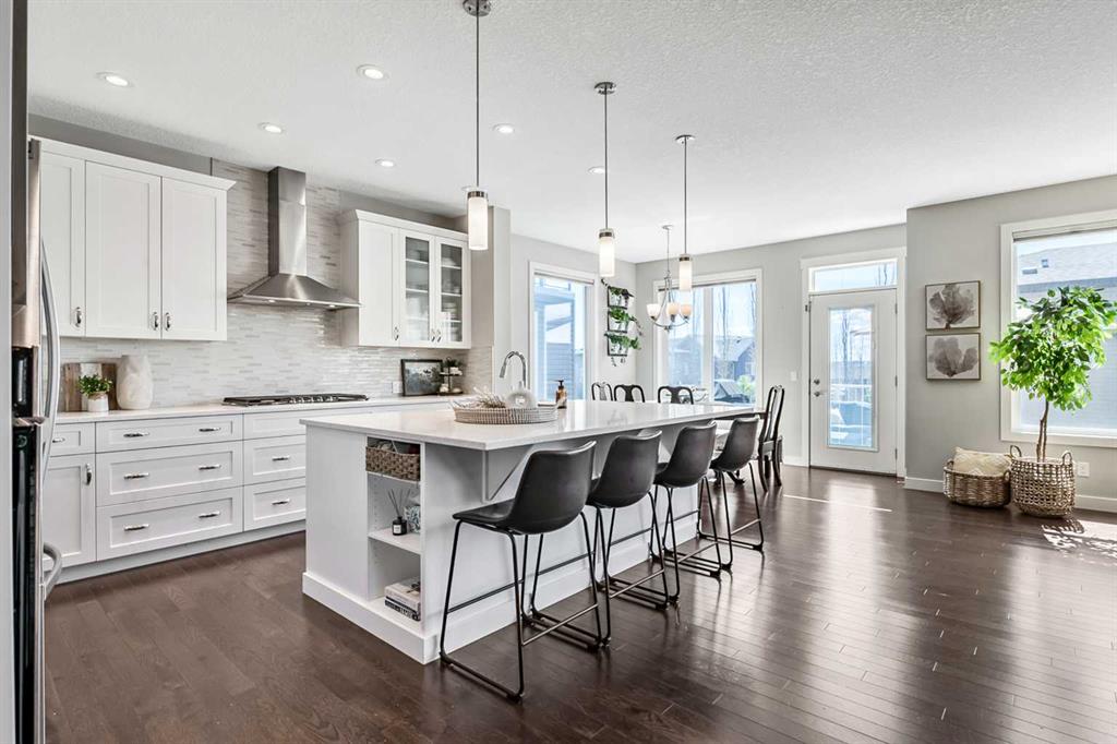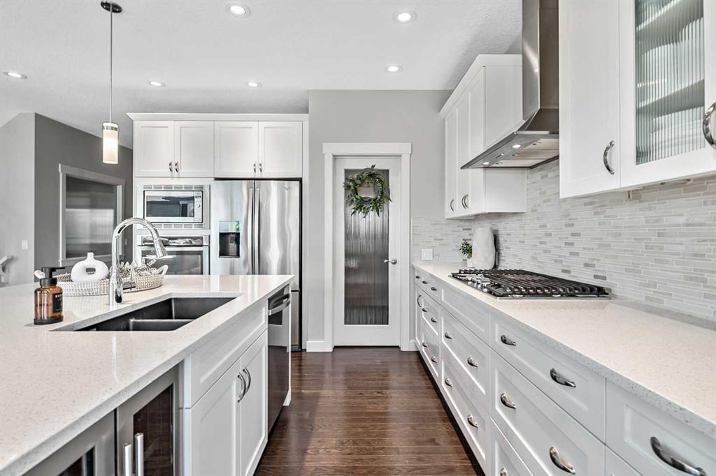 **Open House Sat 2-4** Welcome to 108 Mount Rae Heights—an exceptional fully developed 5-bedroom Sterling-built “Berkshire” home in the sought-after community of Mountainview, just steps to pathways and stunning views of the Rocky Mountains, Sheep River, and nature reserve. Offering nearly 4,000sqft of developed living space, this thoughtfully designed home features a bright, open layout with superb natural light and exquisite finishing throughout. MAIN FLOOR features a spacious entry foyer, private home office, and a showstopping designer kitchen with upgraded cabinetry, stone countertops, gas range, large island, bar fridge, wine storage, modern backsplash, and walkthrough pantry to the mudroom and garage. The open living and dining areas are anchored by a gas fireplace and framed by large southwest-facing windows that flood the space with natural light and capture incredible views. UPPER LEVEL features a vaulted bonus room, laundry room, and four generous bedrooms, including three connected by a Jack & Jill bathroom. The spacious primary retreat with mountain views offers large walk-in closet, and a luxurious ensuite bathroom with soaker tub, walk-in shower, and dual sinks. FULLY DEVELOPED WALKOUT BASEMENT with 9′ ceiling height features spacious rec room, fifth bedroom, and full bathroom—perfect for guests or growing families. Did we mention AC, hardwood floors, water softener, newer blinds throughout, plus finished garage with epoxy flooring? Truly, this home has it all! Located on a quiet, family-friendly street close to paths, parks, playgrounds, and quick access to Calgary. Explore the virtual tour to experience it for yourself (click 3D for virtual walkthrough).