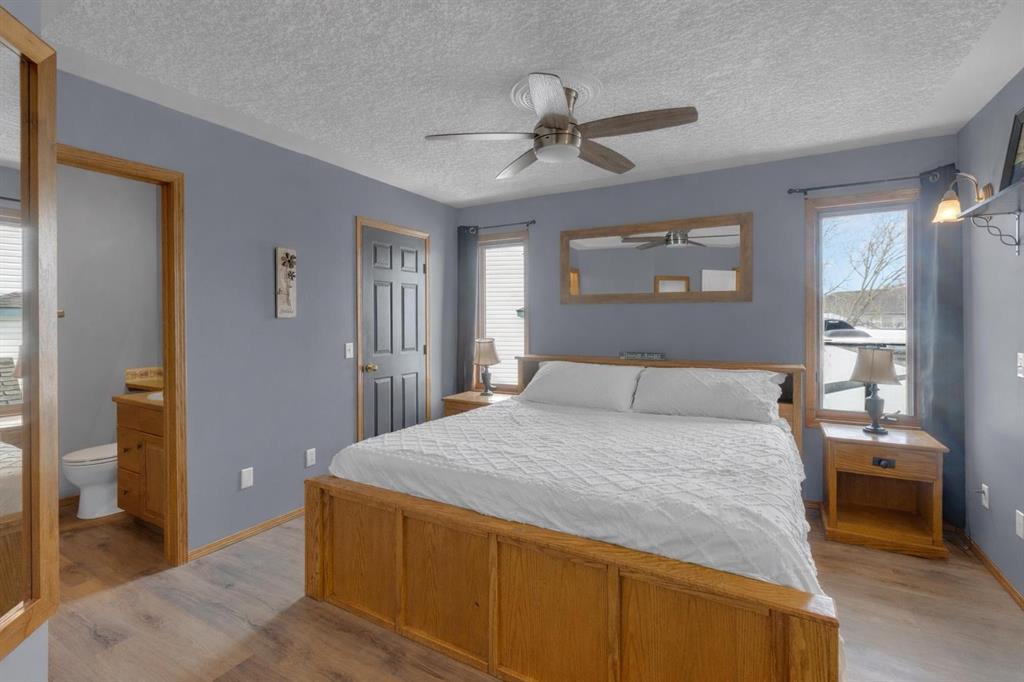 Set on a rare 8,536 sq ft lot, this property offers something that is becoming increasingly hard to find, a backyard that truly feels like an extension of your living space. The expansive size of the yard creates a sense of freedom and privacy, with endless room to relax, entertain, play, or simply enjoy the outdoors. Whether it’s summer gatherings on the deck, kids and pets roaming freely, or the convenience of rear lane access for trailer or RV storage, this outdoor space is a defining feature of the home and a lifestyle opportunity few properties can offer. The generous lot size may also offer potential for a future detached garage or shop (subject to municipal approval), adding even more long term versatility and value. Inside, you’re welcomed by a bright and expansive living room filled with natural light, creating a warm and inviting atmosphere ideal for both everyday living and memorable gatherings. The open flow into the kitchen forms a natural hub for connection, complete with stainless steel appliances and a highly functional layout designed for entertaining and daily life alike. With 5 bedrooms, 3 bathrooms and ample living areas throughout, the home provides exceptional flexibility for growing families, guests, home offices, or hobbies. The fully finished basement significantly expands the usable space, offering the perfect setting for family movie night with the ambiance of a fireplace, media room, play area, teen retreat, gym, or comfortable guest accommodation. The backyard continues to impress with thoughtful features including a spacious deck, natural gas hookup, valuable back alley access, and a dedicated space set up for a hot tub, blending practicality with lifestyle appeal. The heated garage, equipped with cabinets, workbench, and additional storage above, adds year round convenience. Located in the desirable community of West Terrace, this home combines the charm of an established neighbourhood with easy access to elementary schools, parks, scenic river pathways, and Cochrane’s vibrant downtown, all within a comfortable commute to Calgary. Recent updates including newer roof shingles, hot water tank, and washer/dryer provide additional peace of mind.