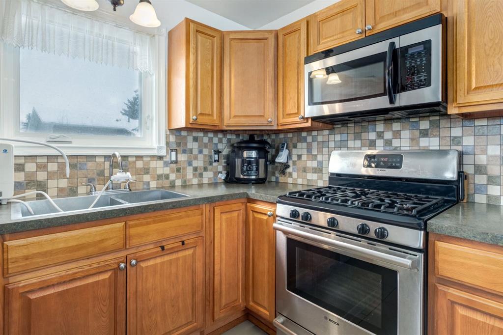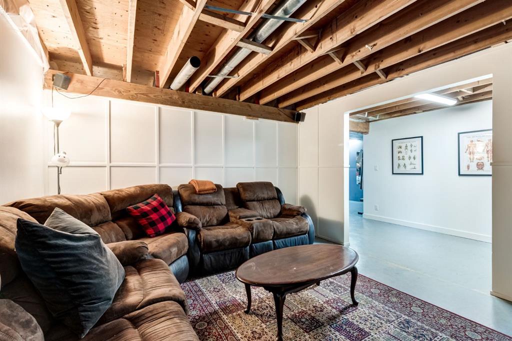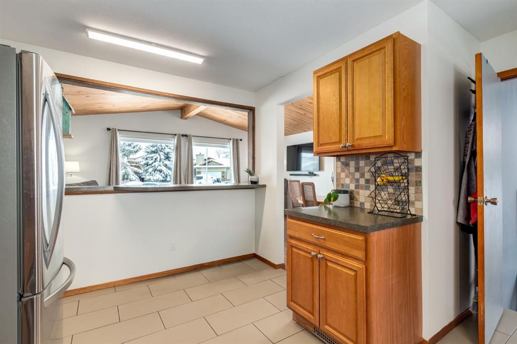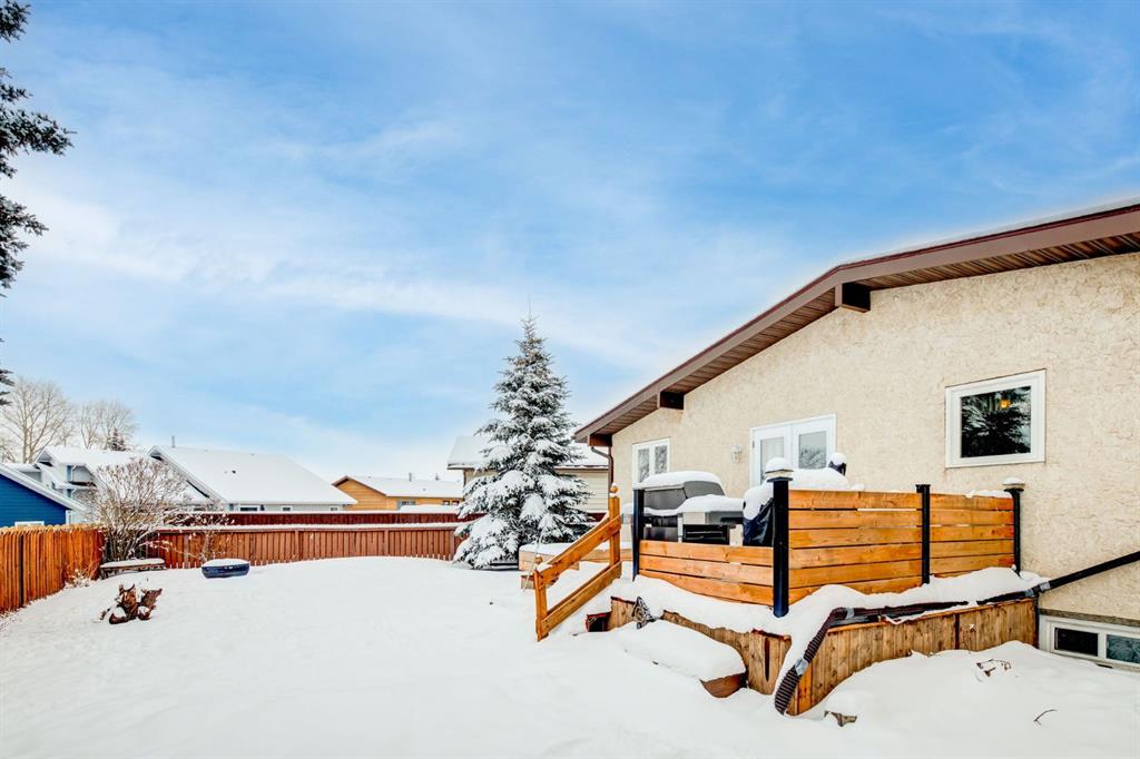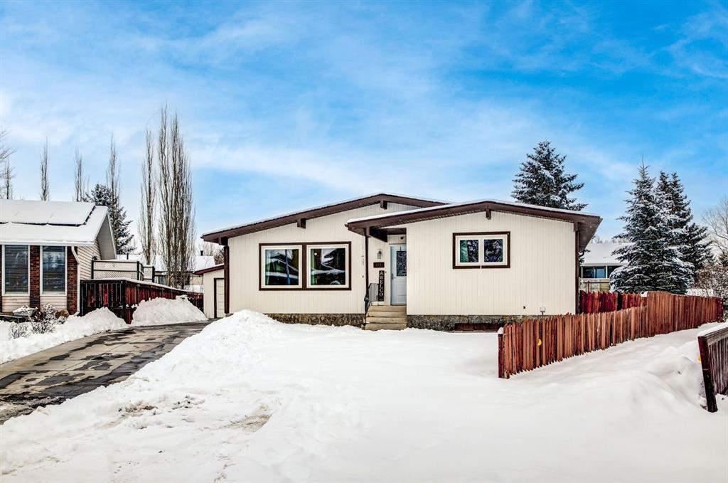 Perched on a sprawling pie-shaped lot on a peaceful cul-de-sac this expansive bungalow showcases an unbeatable location, over 2.500sqft of space, soaring vaulted ceilings, and easy walkability to Morgans Park, soccer fields, and Didsbury schools. This home has been meticulously maintained and updated over the years included a newer driveway, furnace, windows, deck, and more that allows you to not worry about replacing big ticket items. As you enter the home through your spacious entryway with room for bench seating and a walk-in closet, you will be greeted by soaring vaulted ceilings with wood paneling – a rare and elegant feature not often found in Didsbury. The main floor showcases a large open concept living space with high ceilings and is flooded with natural light through large south facing windows. The spacious dining room provides ample space for large gatherings with family and friends and is located adjacent your large kitchen that boasts beautiful, solid wood shaker cabinetry, a gas stove, stainless steel appliances, and tons of counter space and storage. The primary bedroom is large enough to fit king-sized furniture and features two closets – the walk-in closet is plumbed in for a 2-piece ensuite bathroom, which could be easily installed. The second spacious bedroom has a large, bright window, and tons of space for furniture and a desk. The third main floor bedroom provides direct access to the back deck through patio doors and could be the perfect place for a home office. Upstairs is completed with a sizable 4-piece bathrooms with beautiful tile. Downstairs is accessible through a separate side entryway that provides easy access to your oversized 24ftx24ft garage. The basement has been beautifully renovated and boasts a sprawling fourth bedroom with a stunning 4-piece ensuite bathroom, tons of storage, and a large walk-in-closet. The basement also features a large media room, gym/flex space, and a large storage and laundry area. Don’t worry about parking with your large, newer concrete driveway that makes the perfect place to store vehicles/RVs, and provides an amazing sport court for street hockey, basketball, and more. The expansive backyard features a newer deck, beautiful landscaping, and tons of room to play and enjoy the warm summer days. Don’t miss out on this opportunity to own an incredible home on one of the quietest cul-de-sacs in town with easy access to walking paths, golf, parks and school.